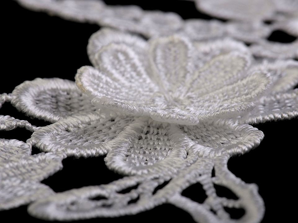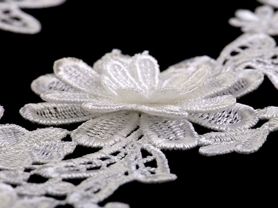 Vynikne na šatech. tílkách a halenkách. Je vhodná také na ozdobení bytového textilu např. polštářů.