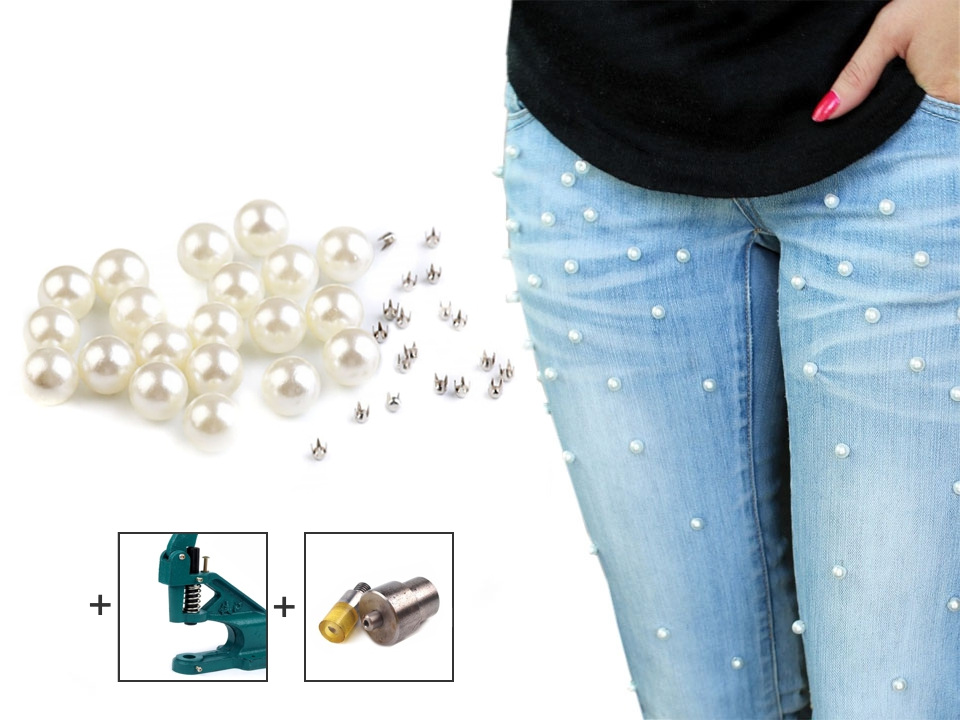 Sada k nýtování vám usnadní práci při výběru vhodných komponetnů pro nýtování. Sada obsahuje plastové perly s perleťovým povrchem a kovové cvočky. Pomocí lisu a vhodného pistonu je můžete přinýtovat na rifle nebo jakýkoliv oděv a vytvořit tak originální outfit.