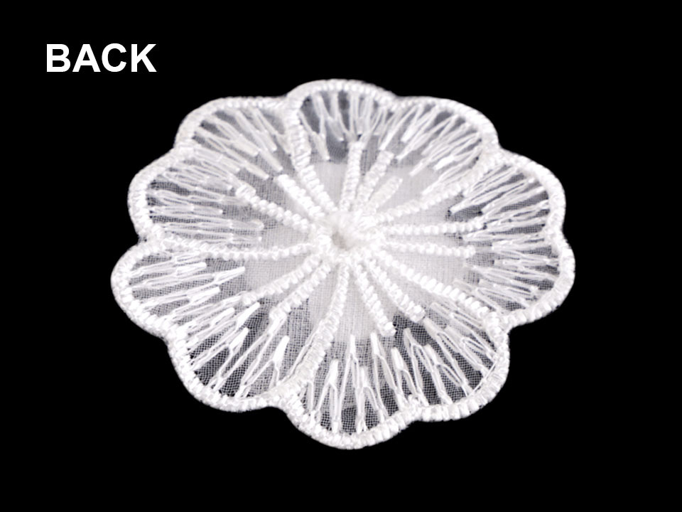 Použití: Květ můžete našít jako ozdobu na společenské šaty, halenky, trička nebo svetry. Je vhodný i na zdobení klobouků, čepic a čelenek do vlasů. Můžete ho také pomocí lepidla přilepit na brožový můstek a vytvořit zajímavý šperk.