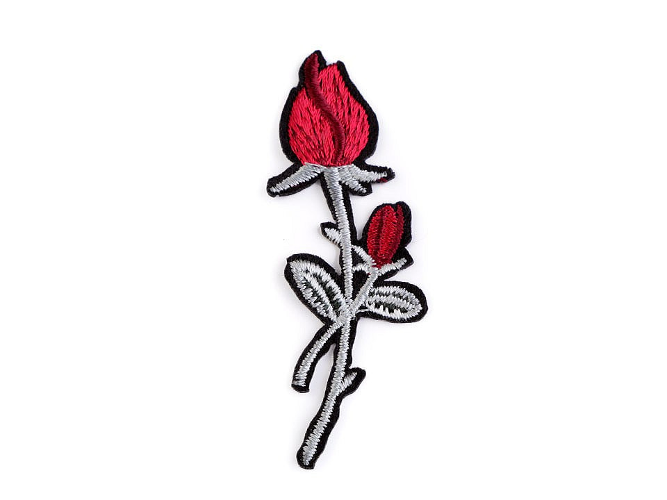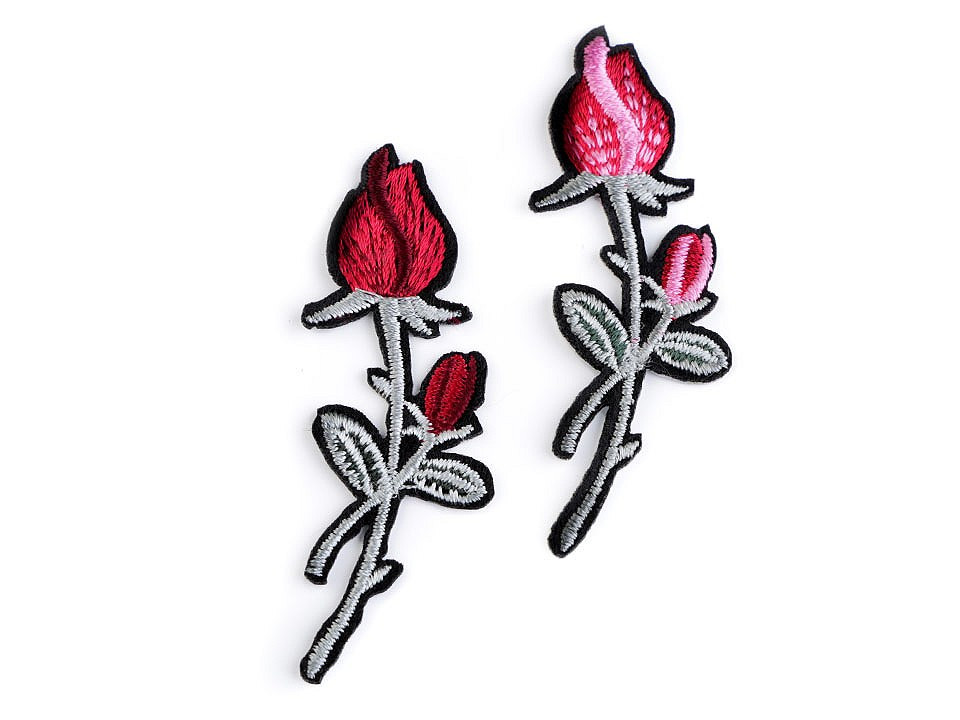 Nažehlovačka s poupaty růže má detailní strojovou výšivku.