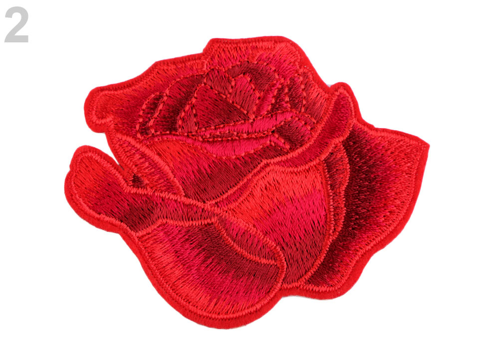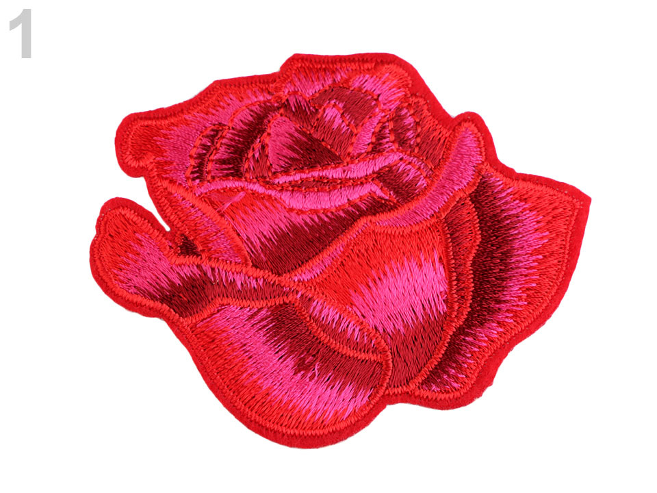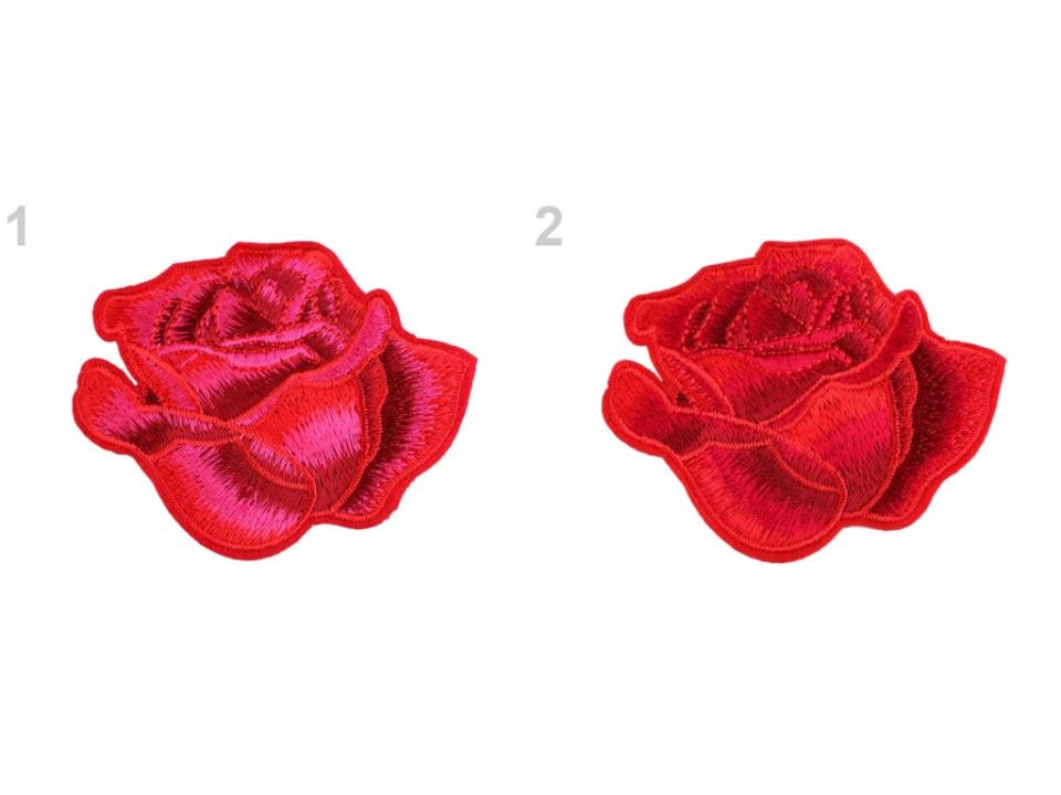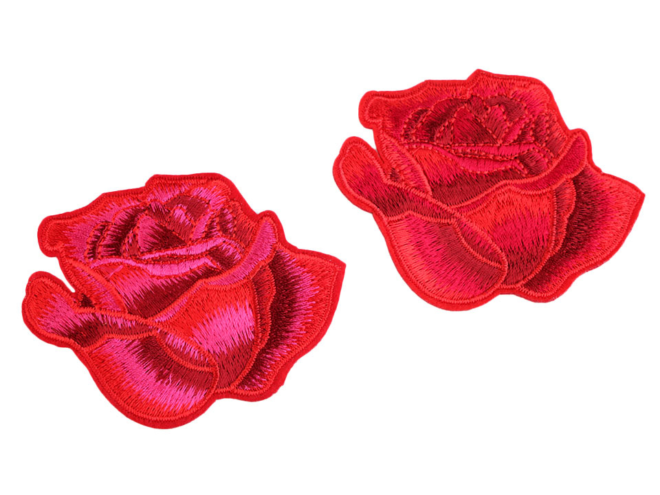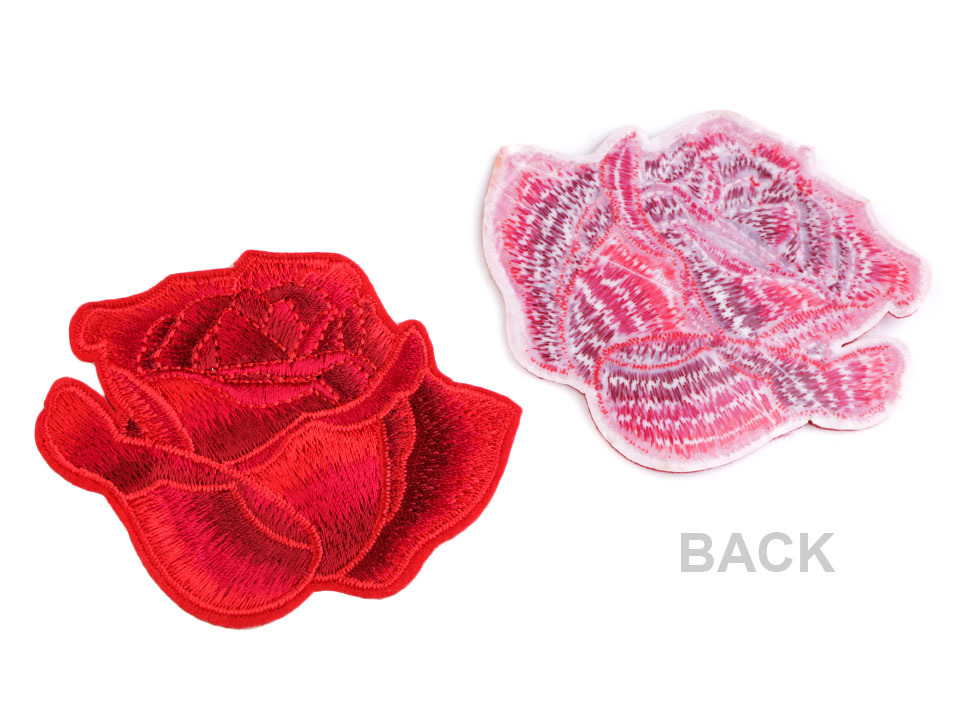 Nažehlovačka růže má detailní celoplošnou strojovou výšivku.