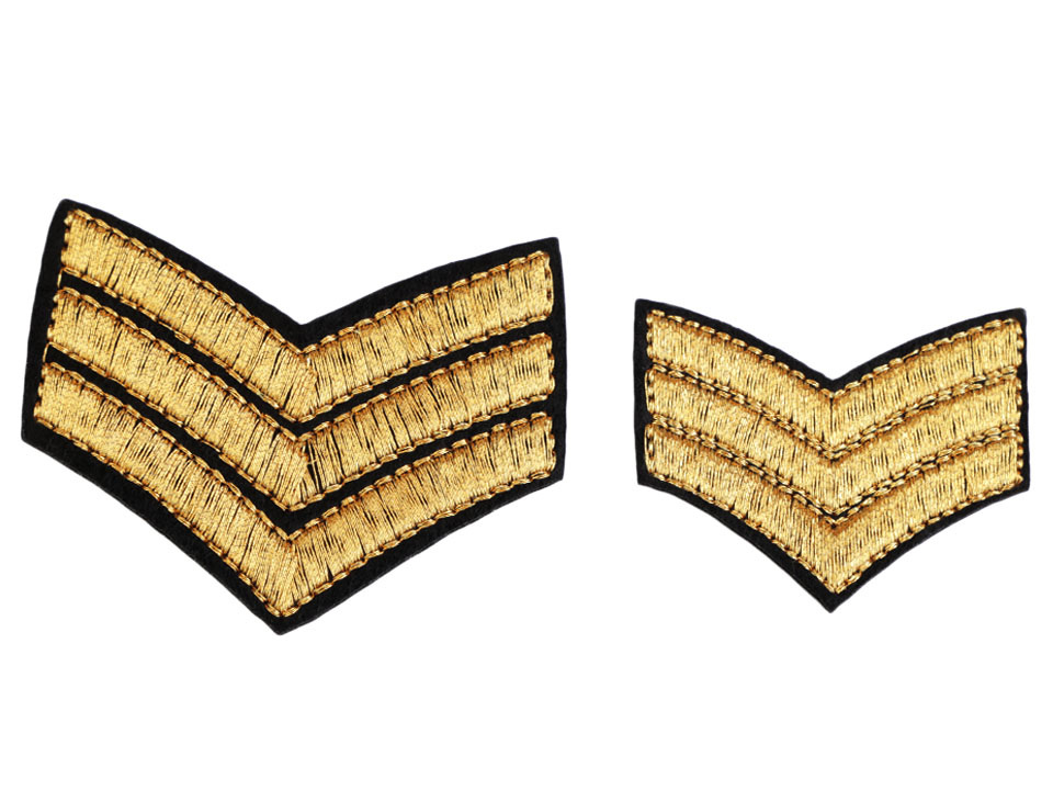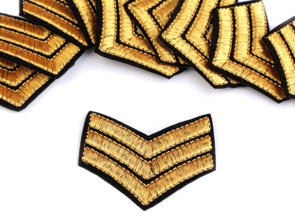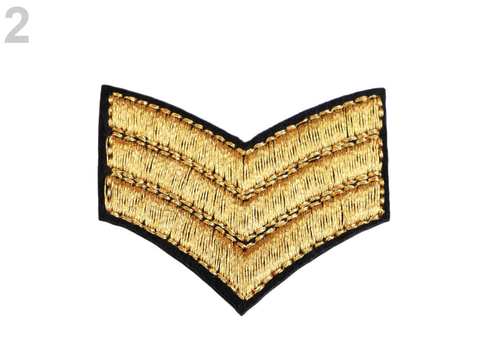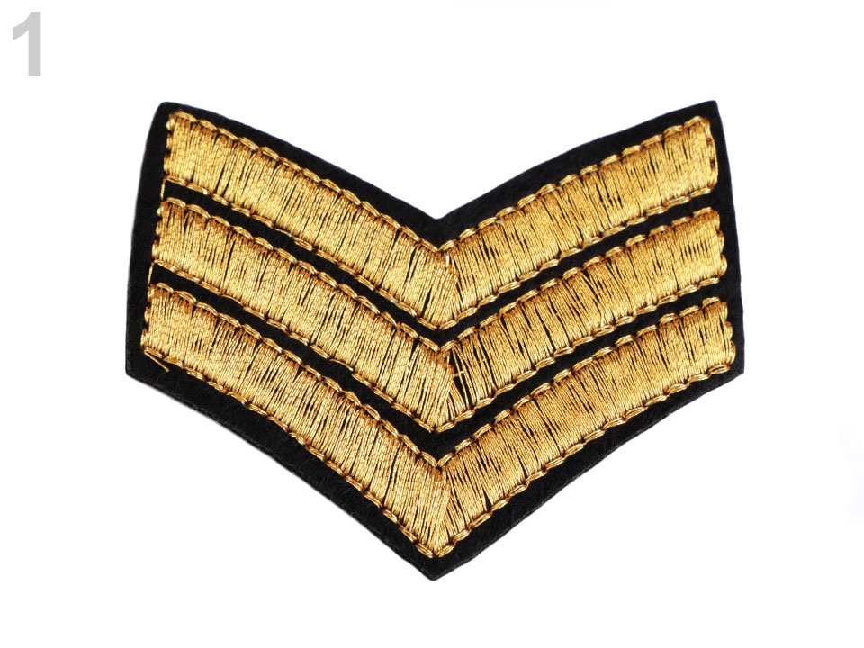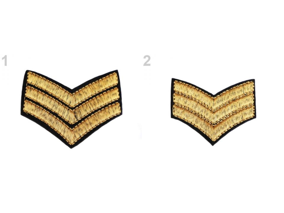 Nažehlovačka s válečnou hodností má lurexovou výšivku.