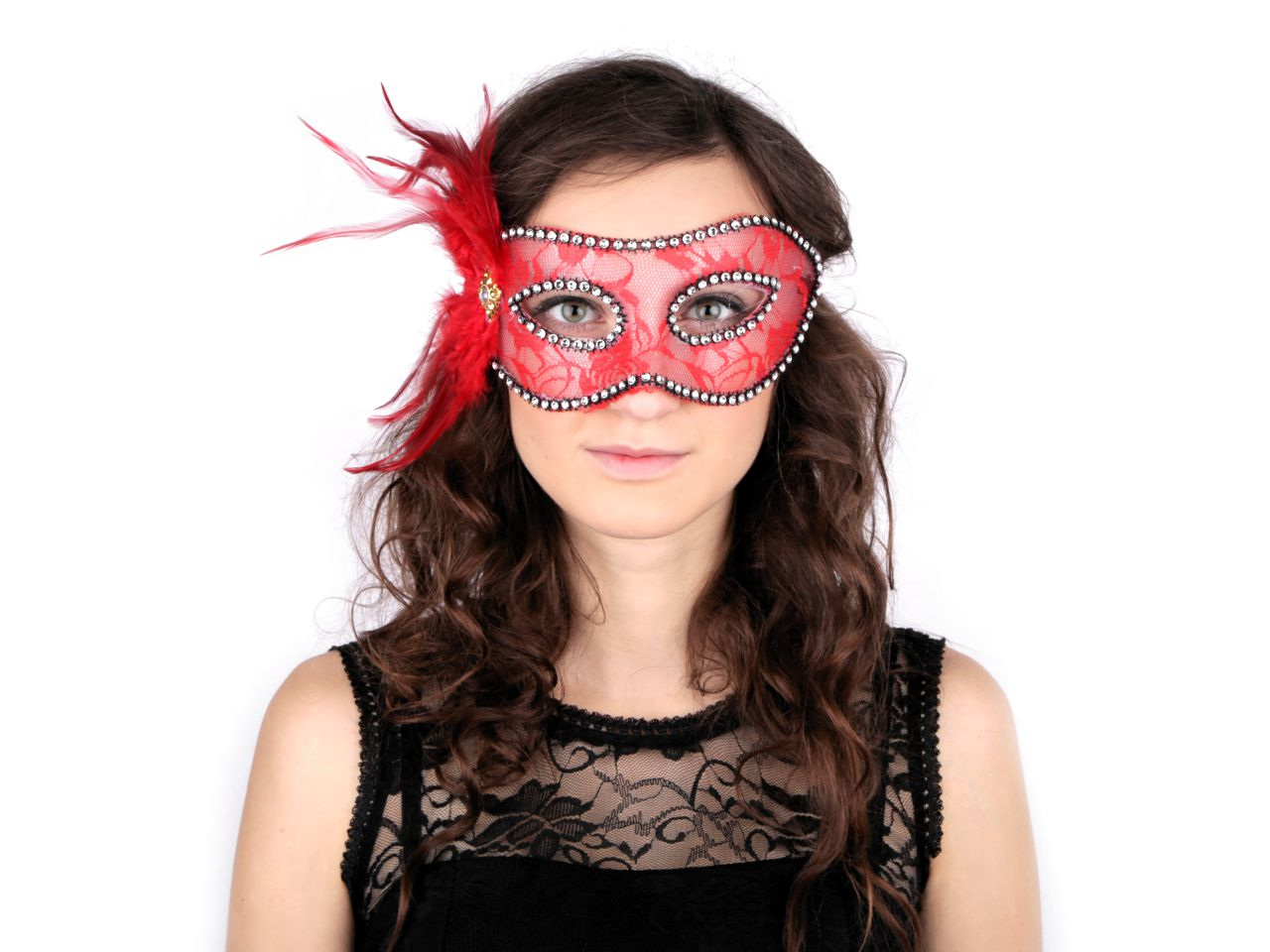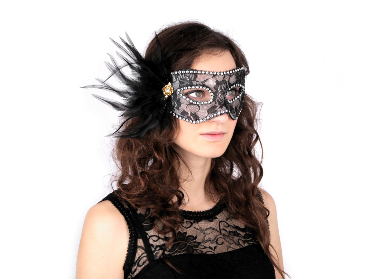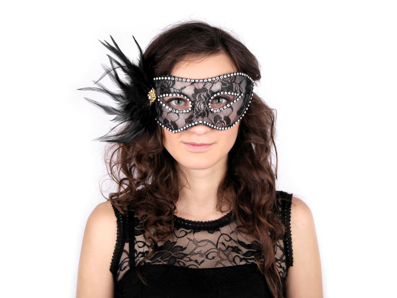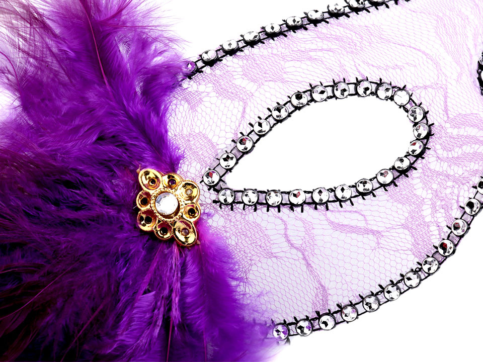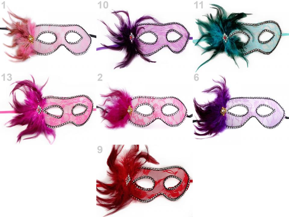 Karnevalová škraboška je vyrobena z pevného plastu, který dobře drží tvar. Peří, broušený kamínek a lemování se třpytivým prýmkem přidávají masce na eleganci. Ozdobná aplikace na masce je připevněna na pevno. Zazáříte s ní na karnevalech, večírcích nebo na párty. Maska se zavazuje pomocí saténové stuhy.