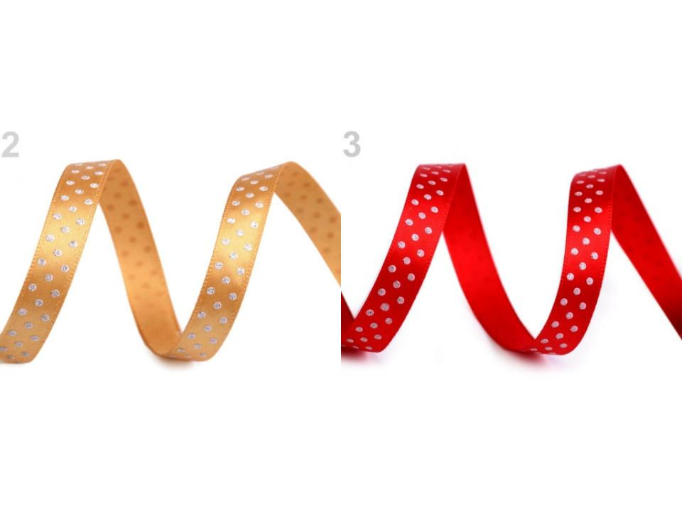 Saténovou stuhu zdobí třpytivé puntíky z glitrů.