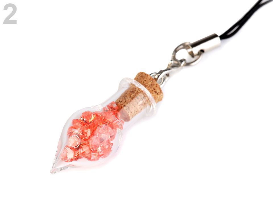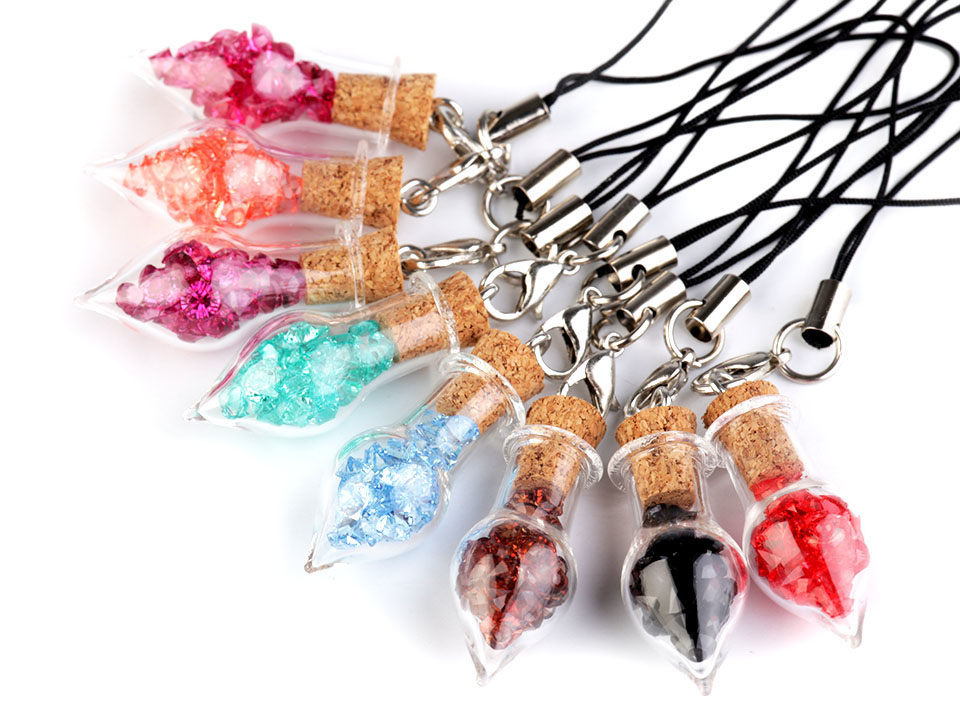 Magický přívěsek skleněná kapka s krystaly je okouzlujícím dárkem pro radost. Úchvatný třpyt krystalků nenechá žádnou ženu chladnou. Díky poutku se může sklenička kamkoliv zavěsit. Na konci poutka má odepínací karabinku.