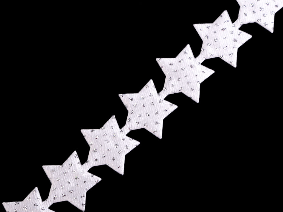 Saténový prýmek, který tvoří spojené hvězdy, jsou zdobené třpytivými glitry.