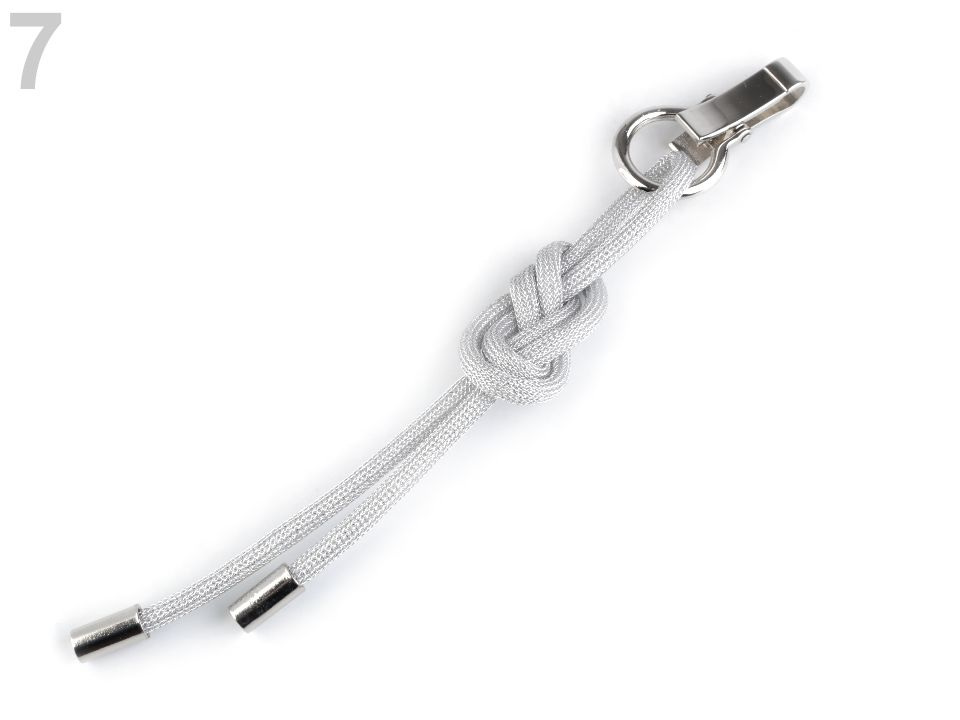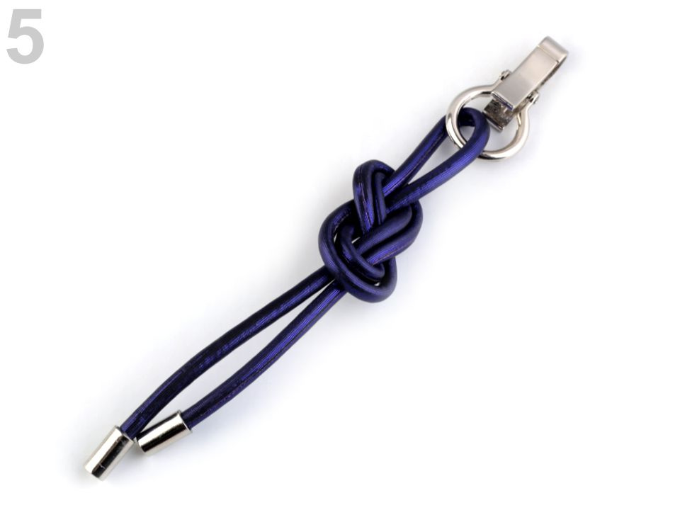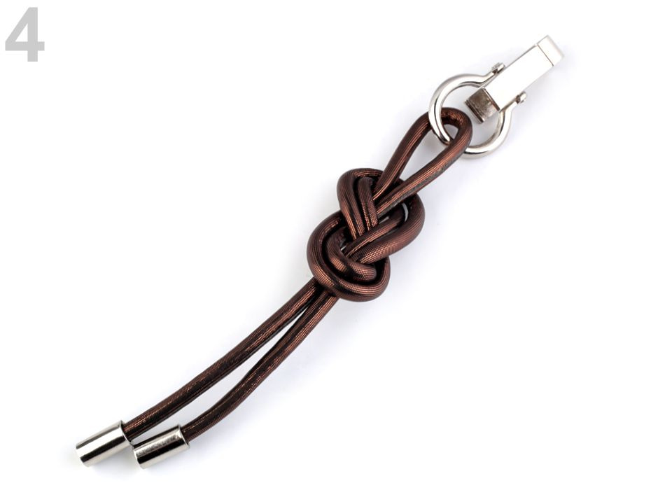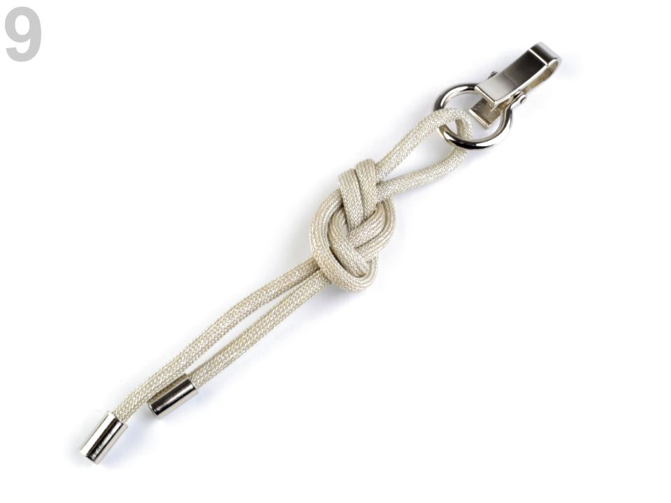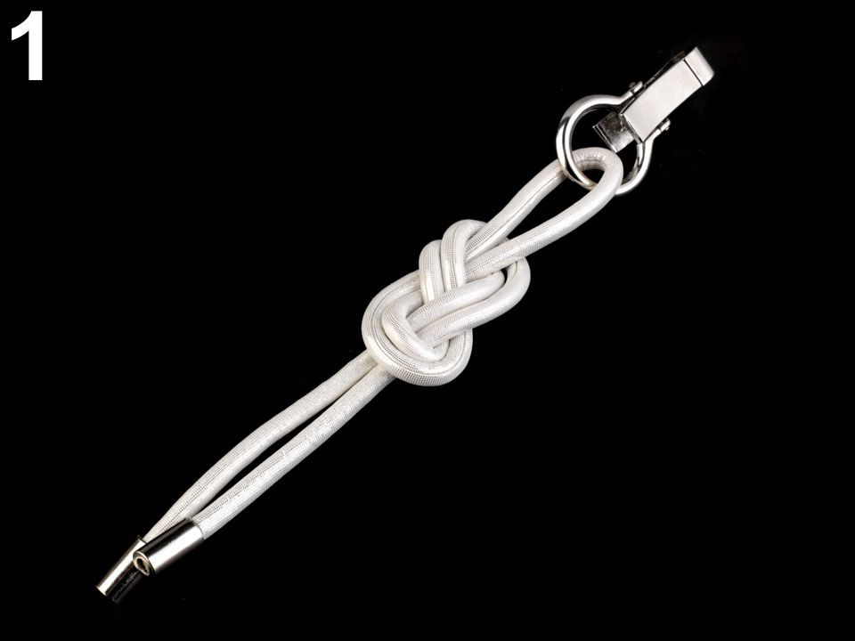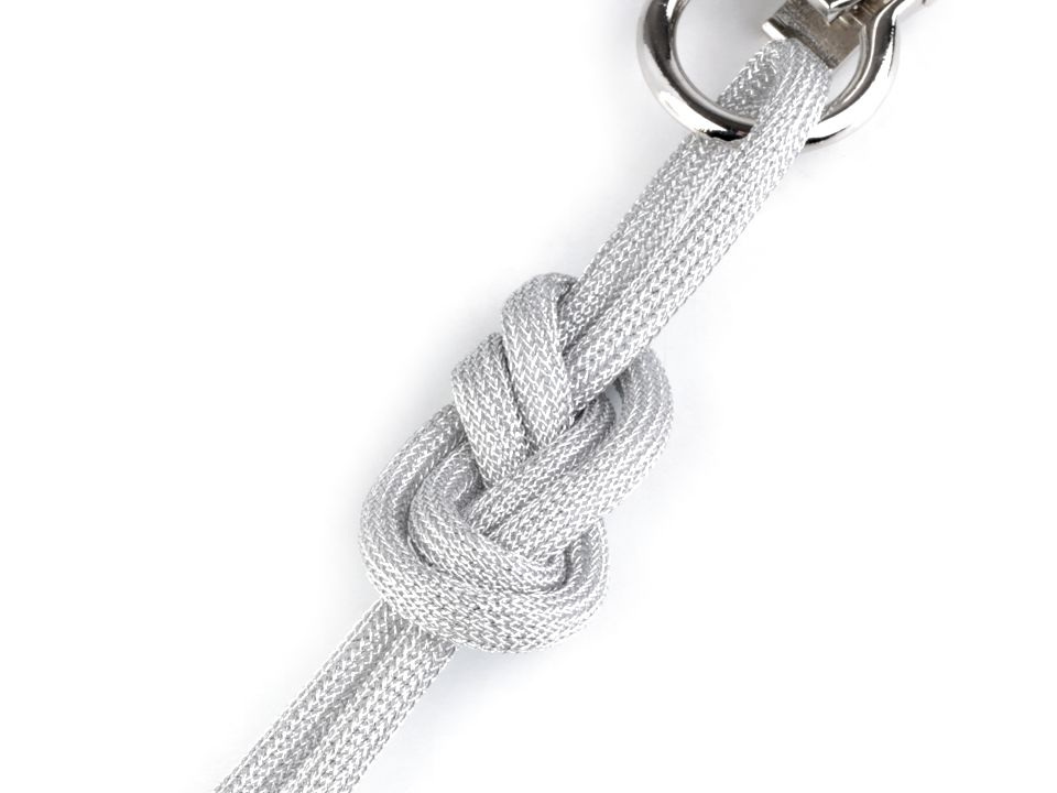 Přívěsek s uzlem z efektní lesklé šňůrky bude stylovým doplňkem vaší kabelky nebo klíčů.