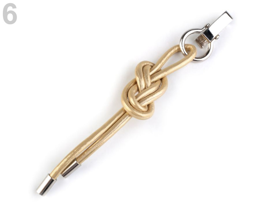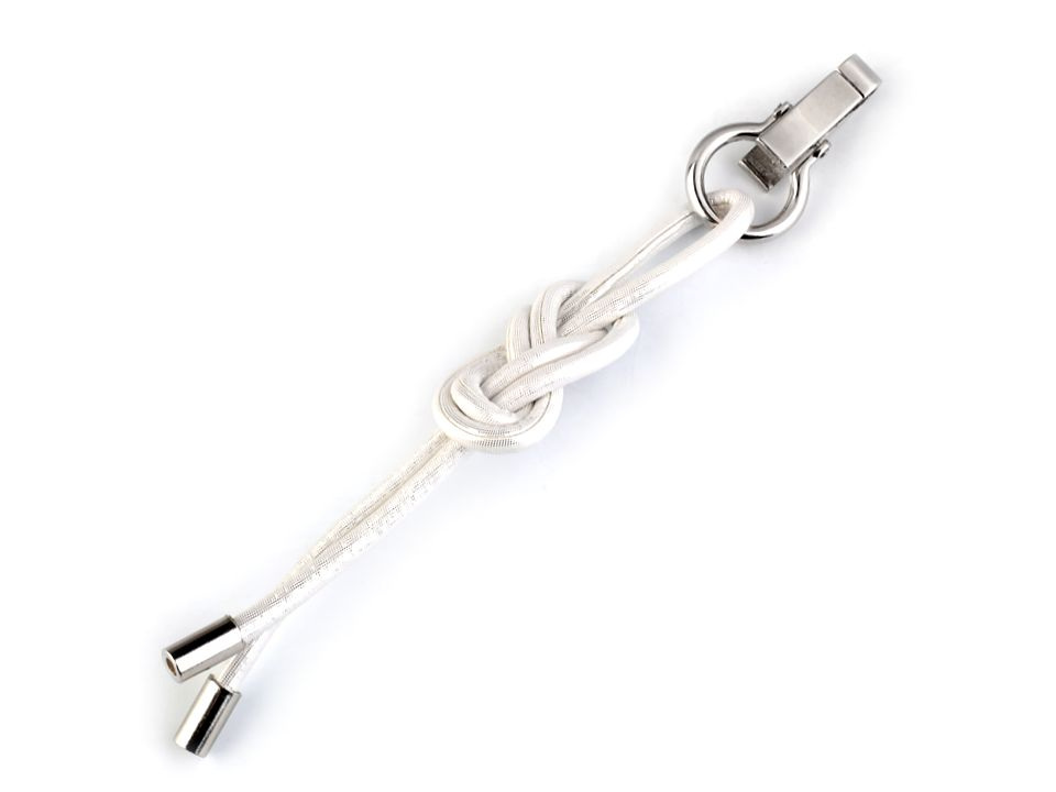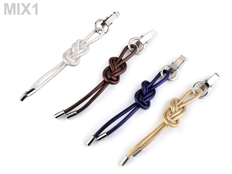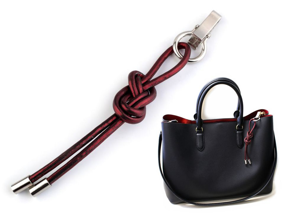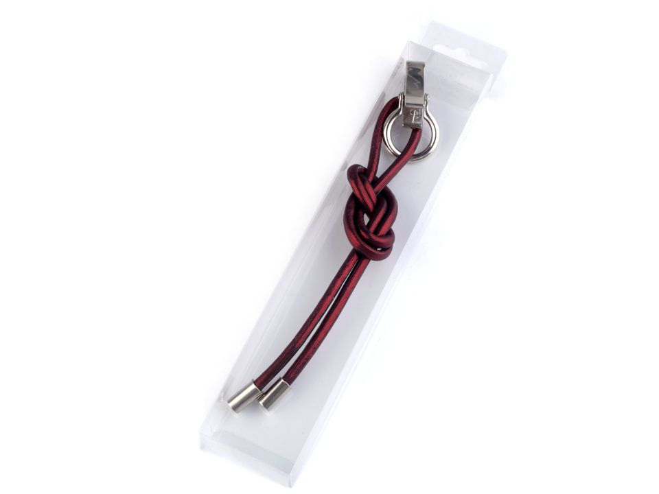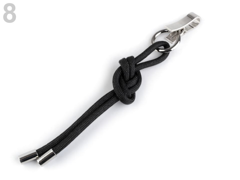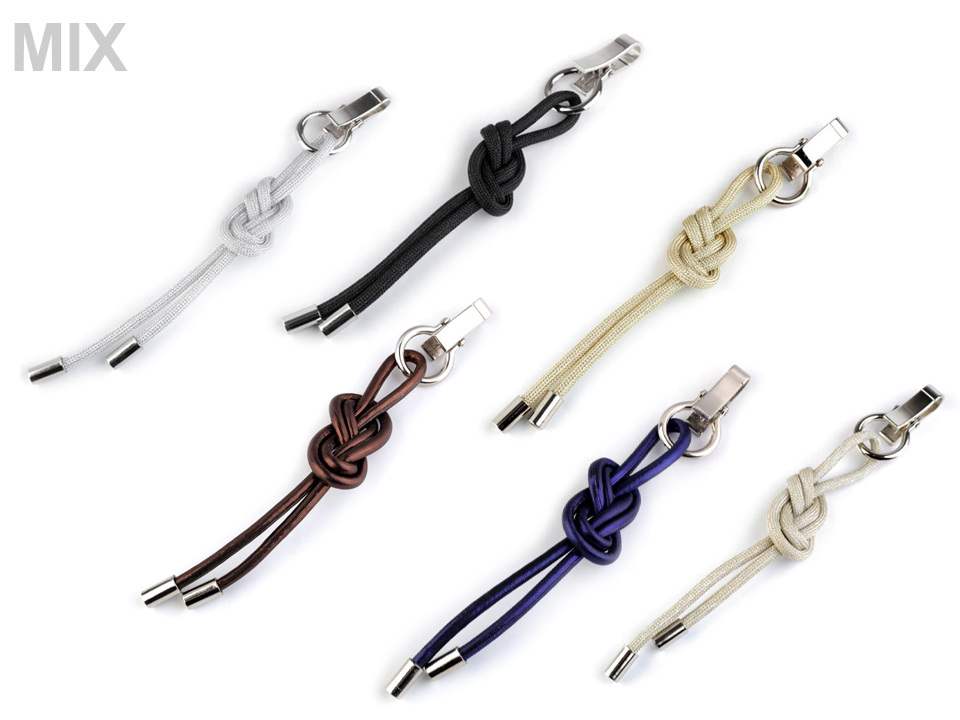 Přívěsek s uzlem z efektní lesklé šňůrky bude stylovým doplňkem vaší kabelky nebo klíčů.