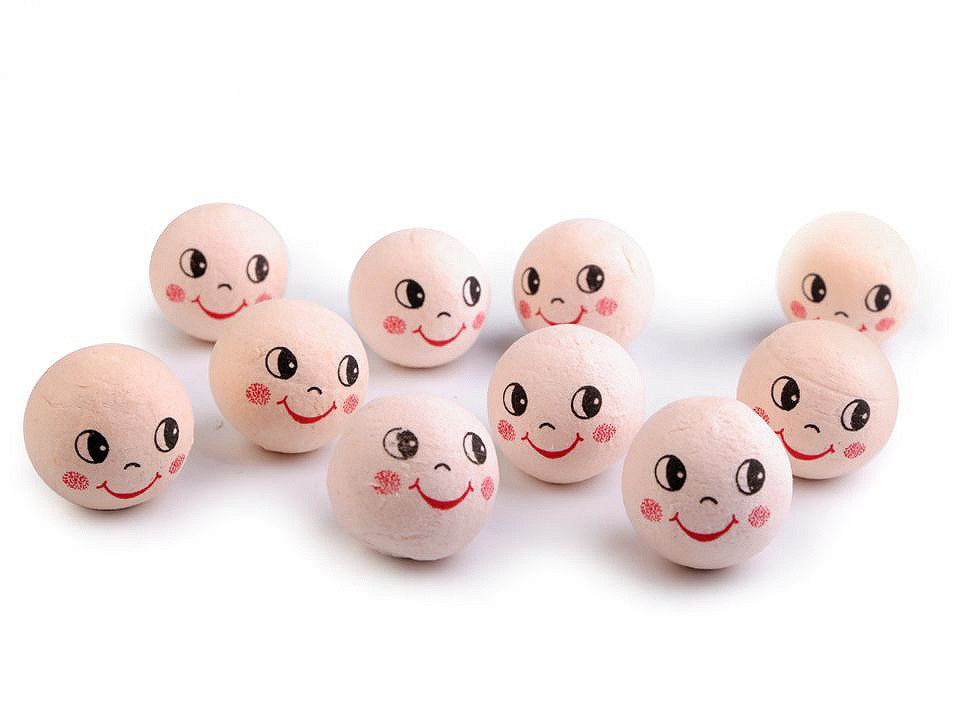 Z vatové hlavičky s obličejem můžete vyrobit různé postavičky, panenky, loutky, maňásky apod. Hlavička má zespodu malý otvor, do kterého můžete zapíchnout špejli či drátek a umístit například do květináče.