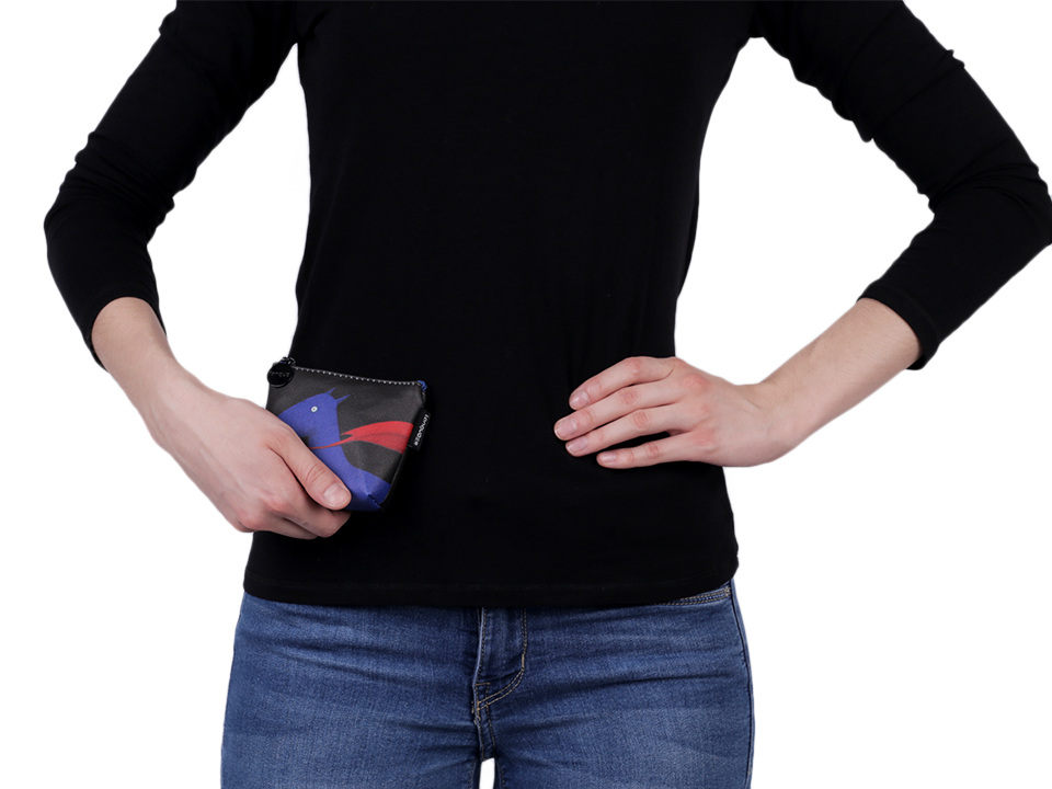 Hodí se na mince i klíče. Dá se použít i na drobnou kosmetiku do kabelky. Zapíná se na zip, uvnitř má podšívku.