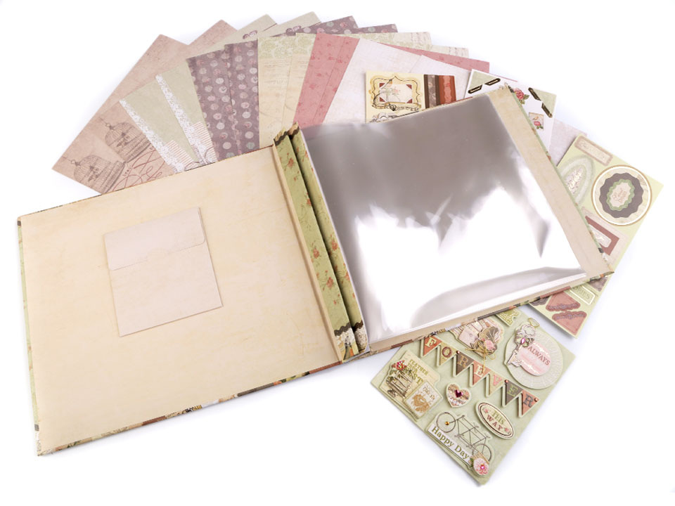 Toužíte si vyrobit vlastní originální foto album? S naší sadou to není nic těžkého! V sadě je spousta potřebného materiálu, navíc potřebujete jen své fotografie. Uvnitř alba je 10 průhledných vsunovacích kapes, do kterých jednotlivé zpracované stránky vložíte. Nemusíte se tak bát, že něco pokazíte, navíc můžete vložené stránky kdykoliv vyměnit.