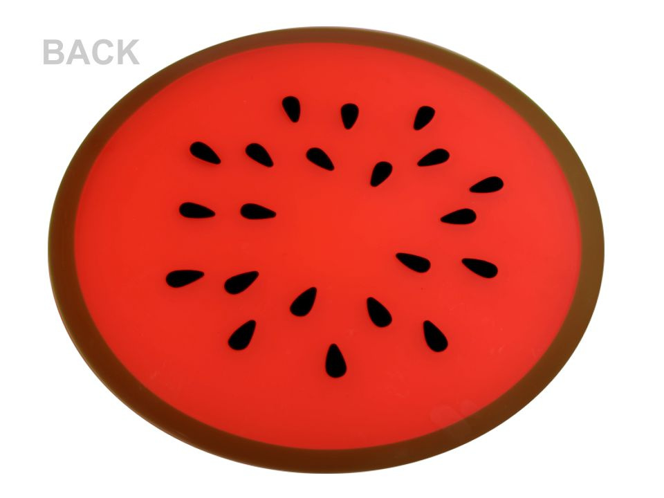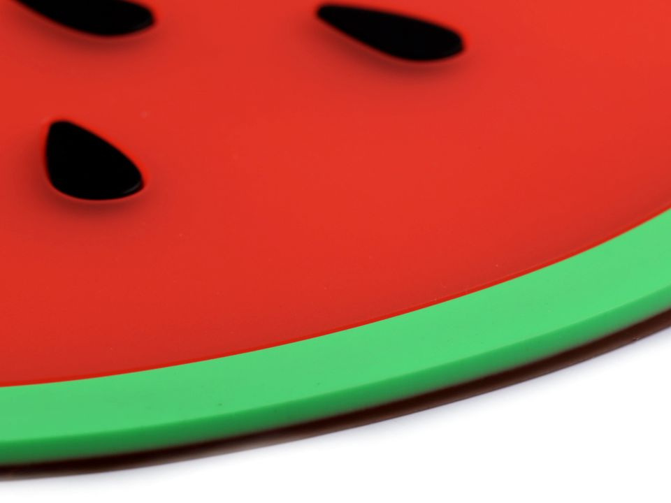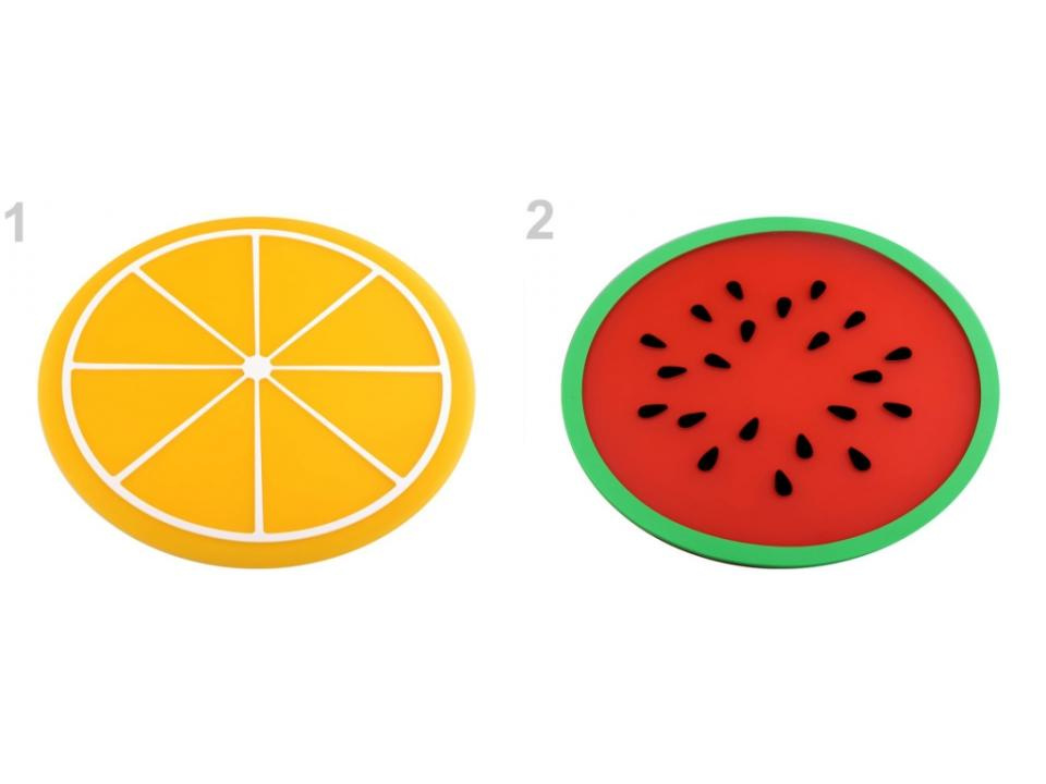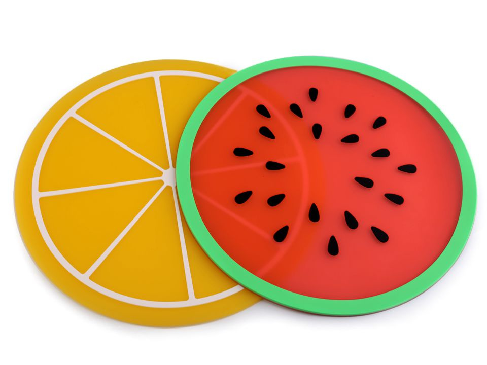 Silikonová podložka s designem ovoce působí vesele a hravě. Perfektně se hodí pod talíř či horký hrnec. Díky použitému materiálu je praktická, lehce omyvatelná a dokonale přilne ke stolu. Můžete ji využít také jako podložku pod myš.