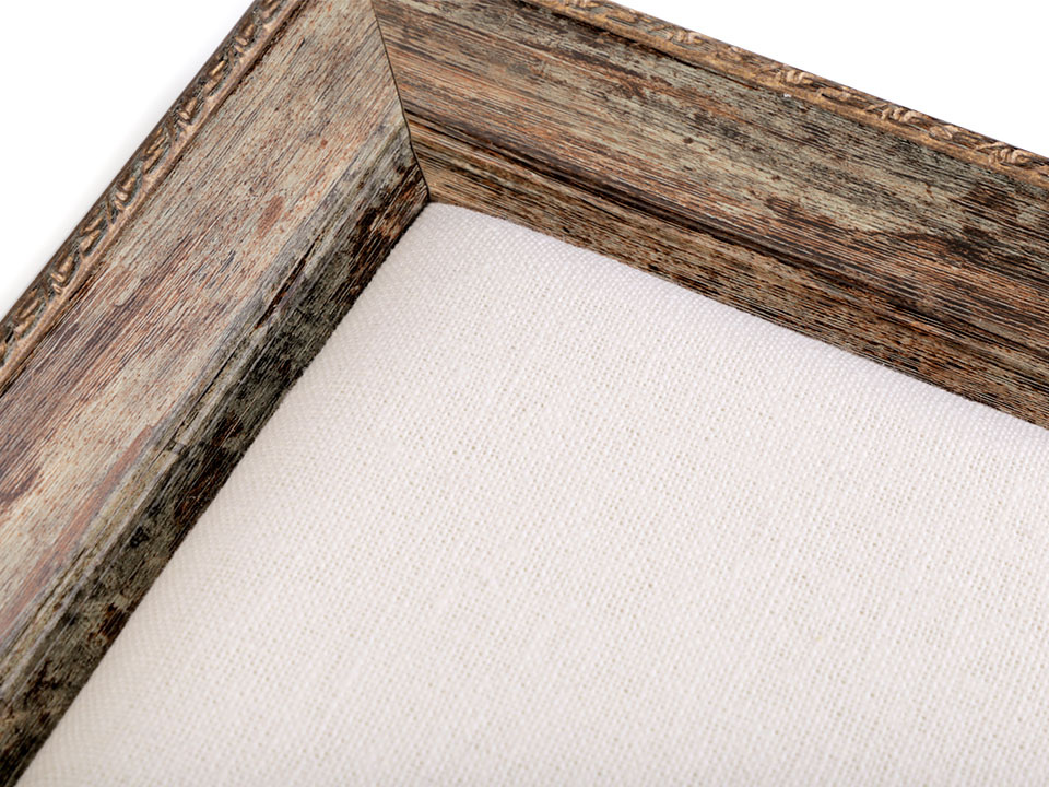 Rám s molitanem potažený lněným plátnem můžete kreativně dozdobit. Do molitanu můžete postupně připichovat ozdoby - kousky textilních materiálů, knoflíky, motýlky a další aplikace a vrstvit je na sebe. Vzniknou tak např. obrazy krajin, postav, zvířat a dalších.