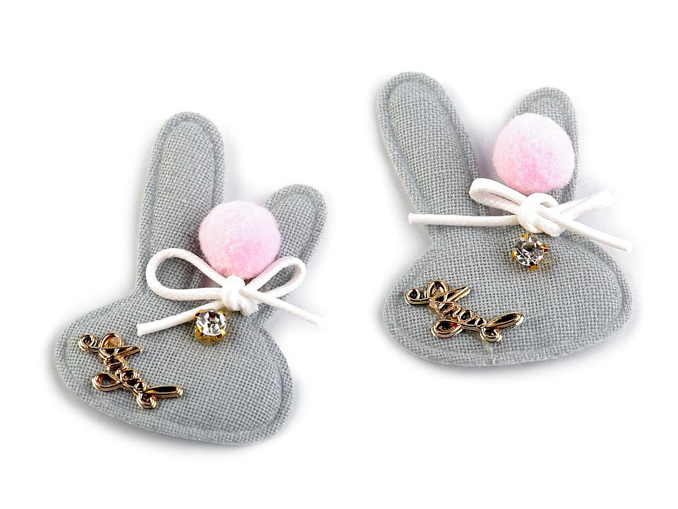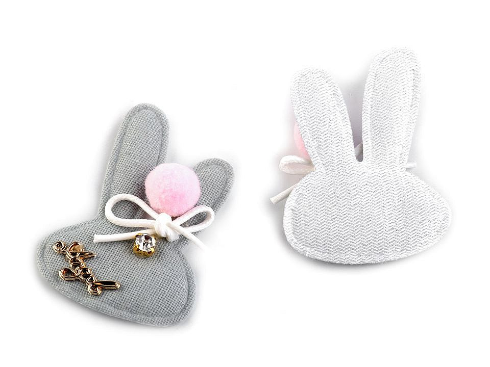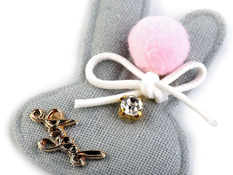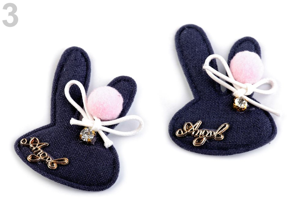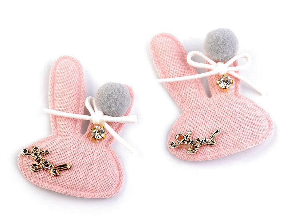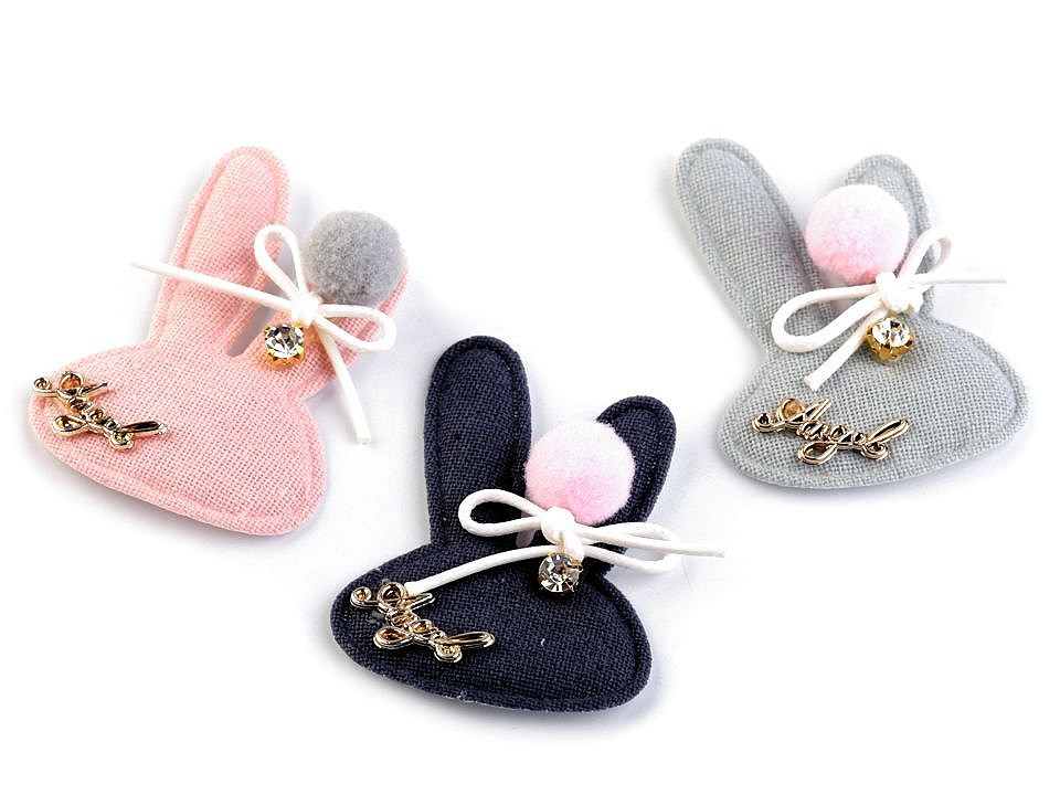 Textilní aplikace v podobě zaječí hlavy vykouzlí vašemu outfitu originální a moderní design. Aplikace je zdobena bambulkou, mašličkou z voskované šňůry, kamínkem a nápisem "Angel".
