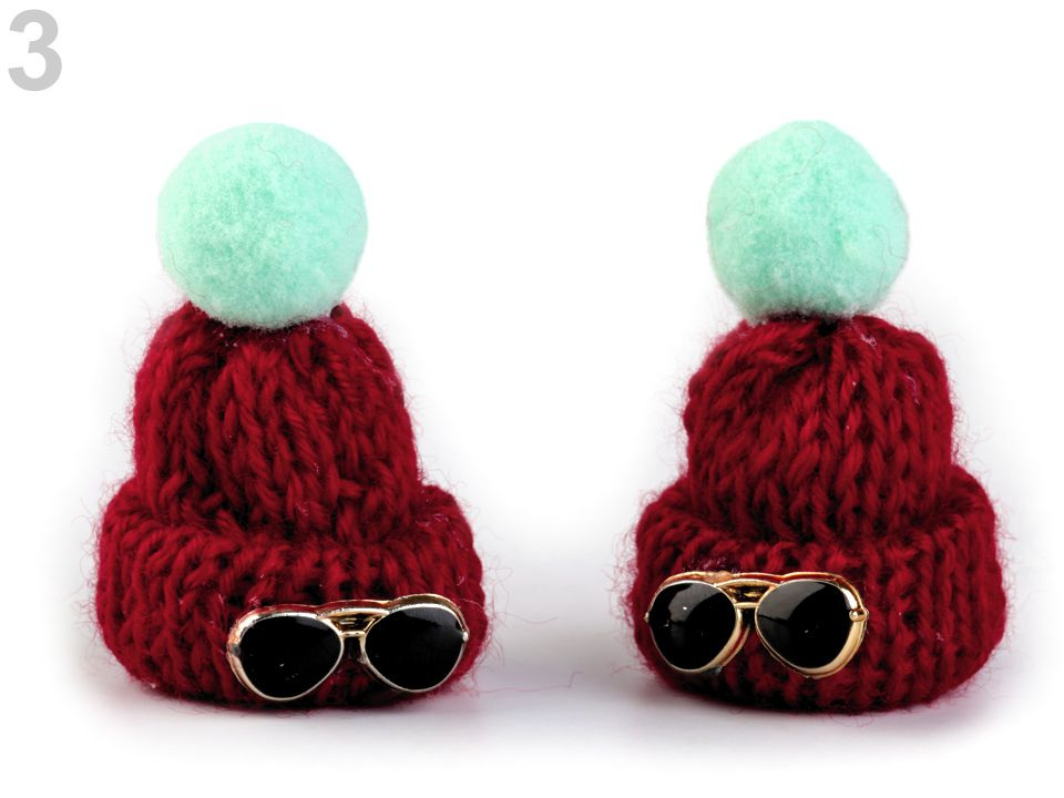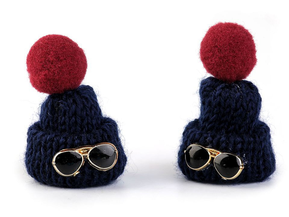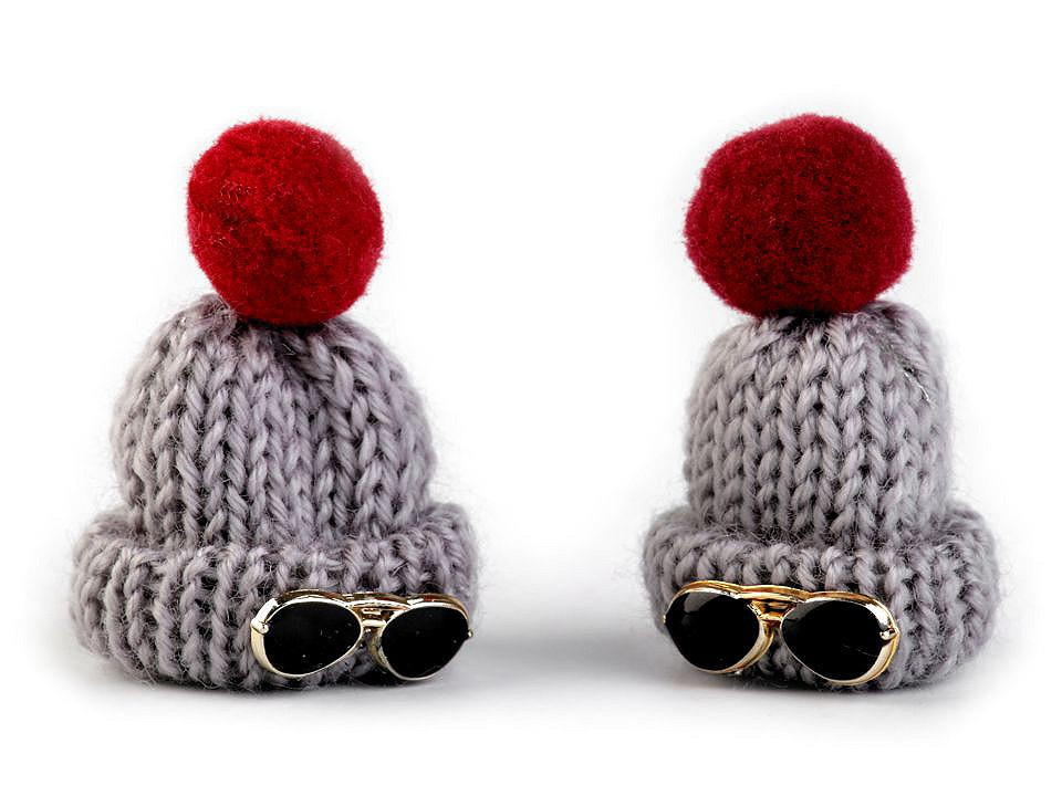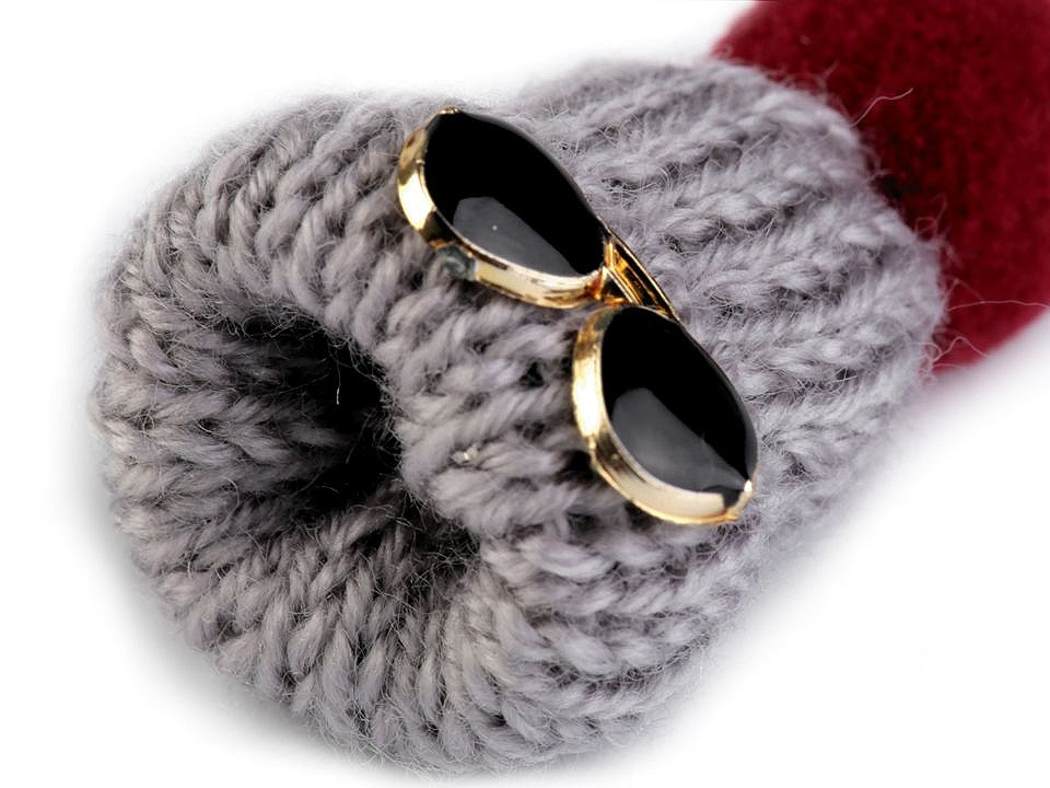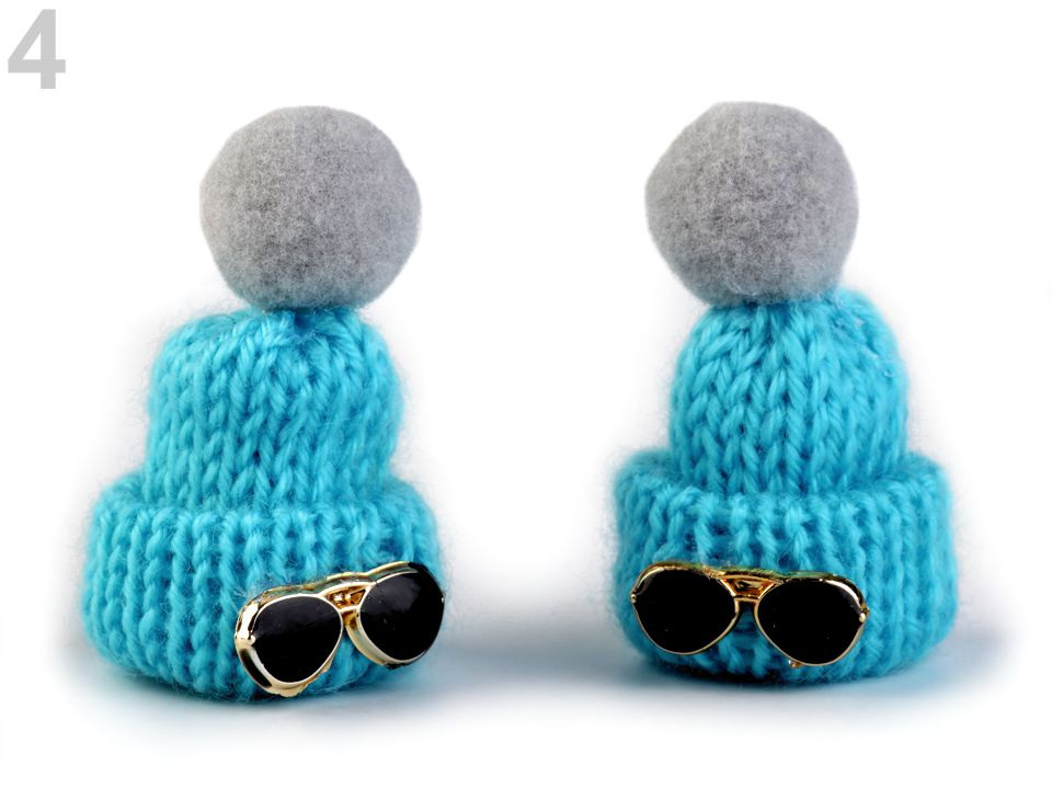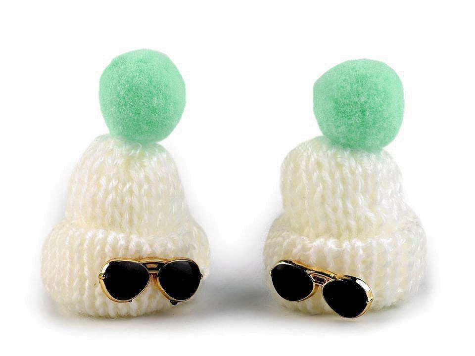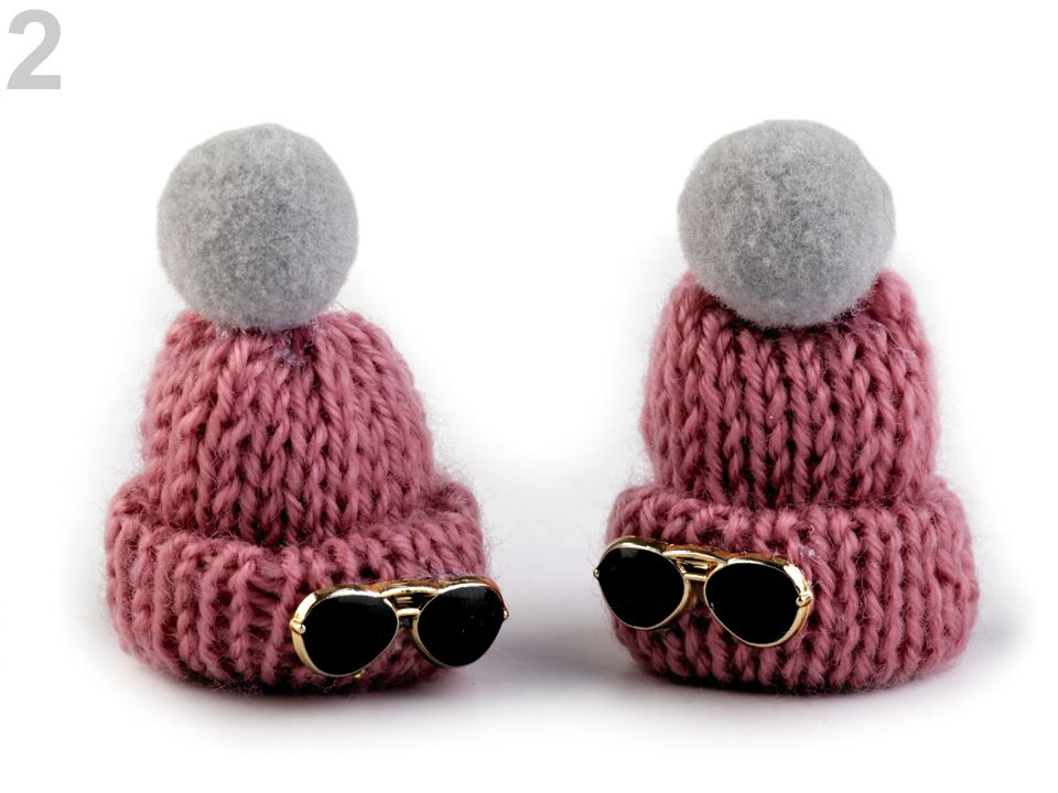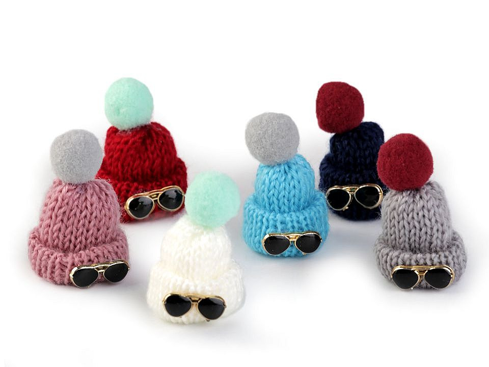 Originální pletená aplikace zimní čepička je doplněna roztomilou bambulkou a slunečními brýlemi.