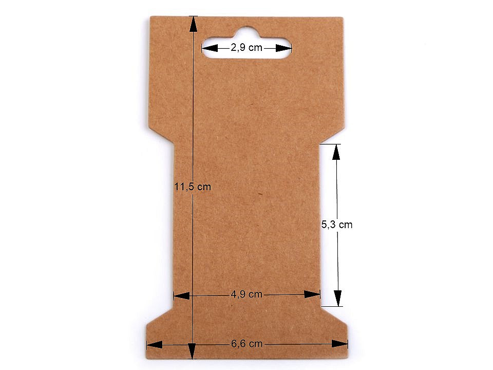 Papírovou kartu se závěsem využijete pro vystavení gumiček, sponek a v menším návinu také stuh, šňůr, krajek atd.