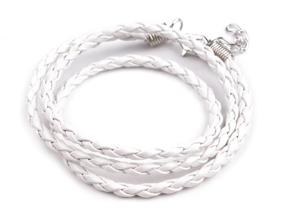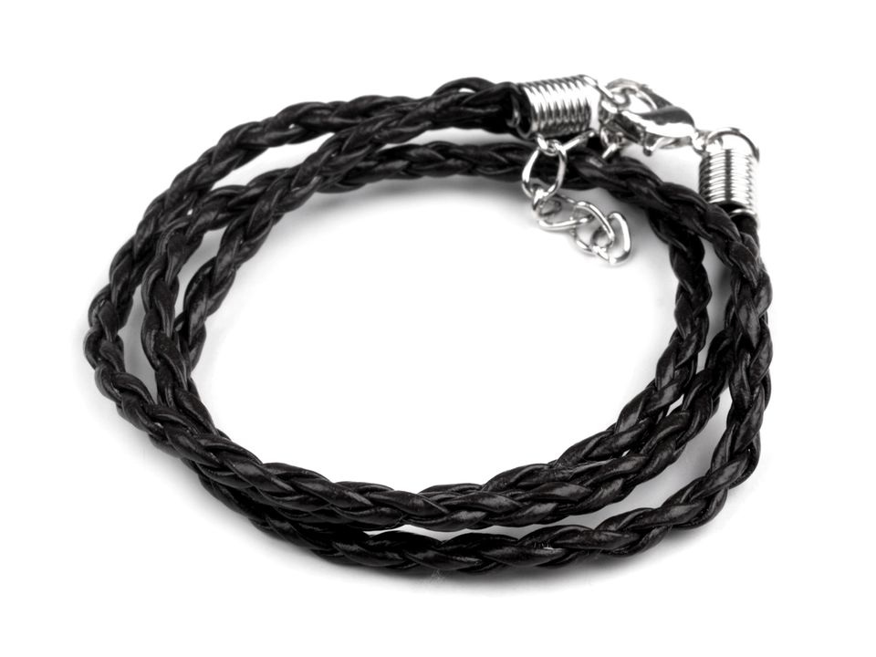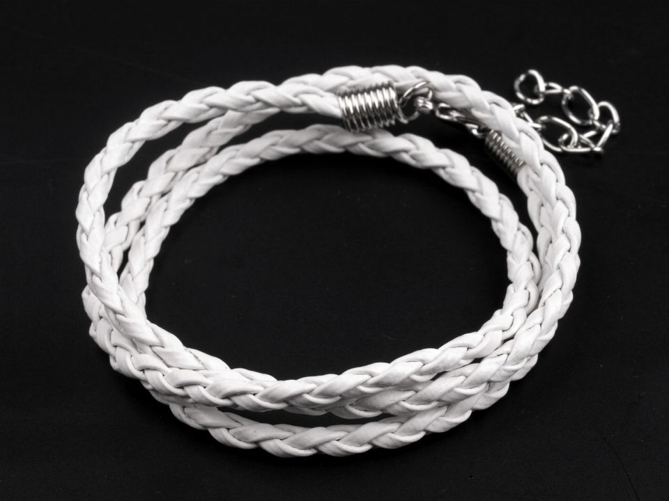 Spletená šňůra z eko kůže na krk v délce 53 cm, adjustační řetízek u zapínání cca 4 cm.