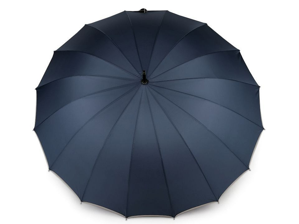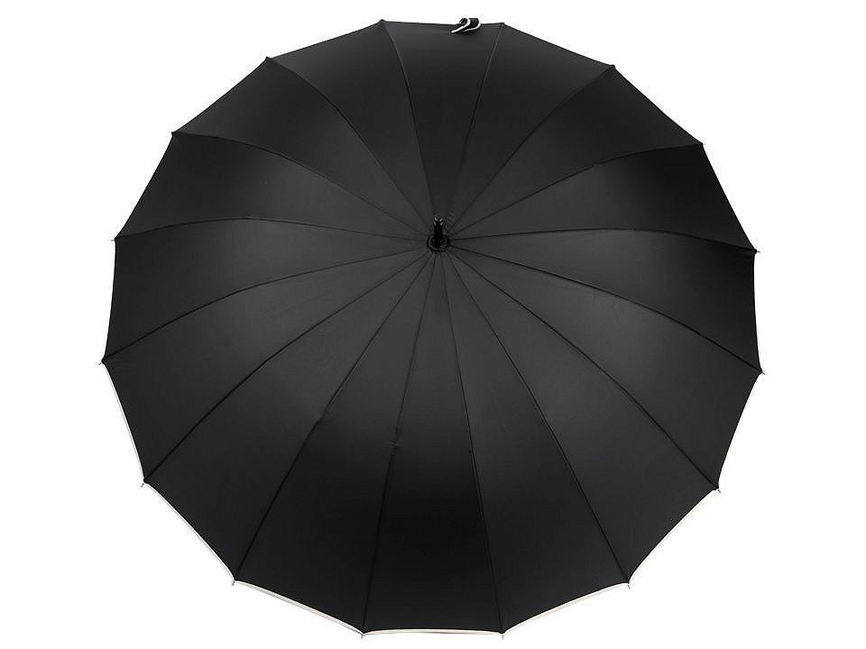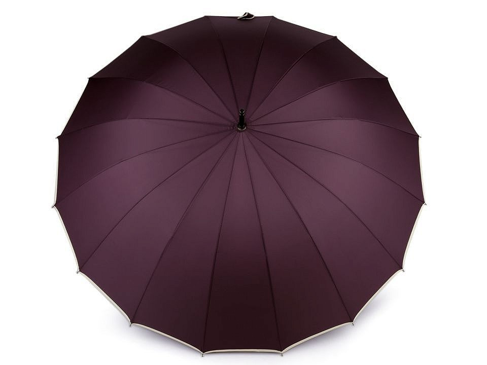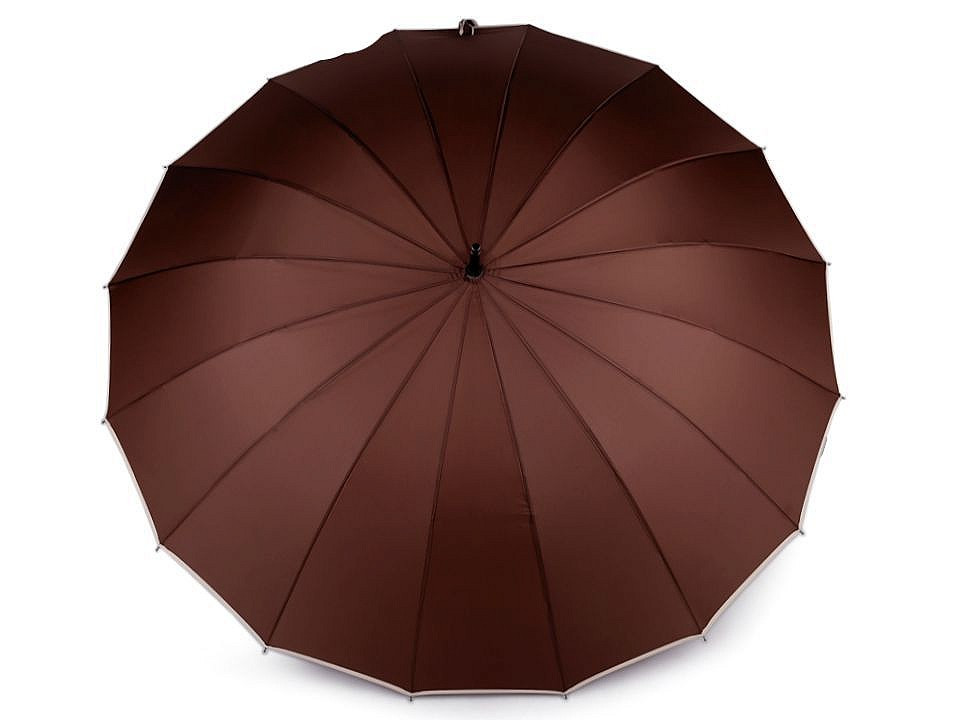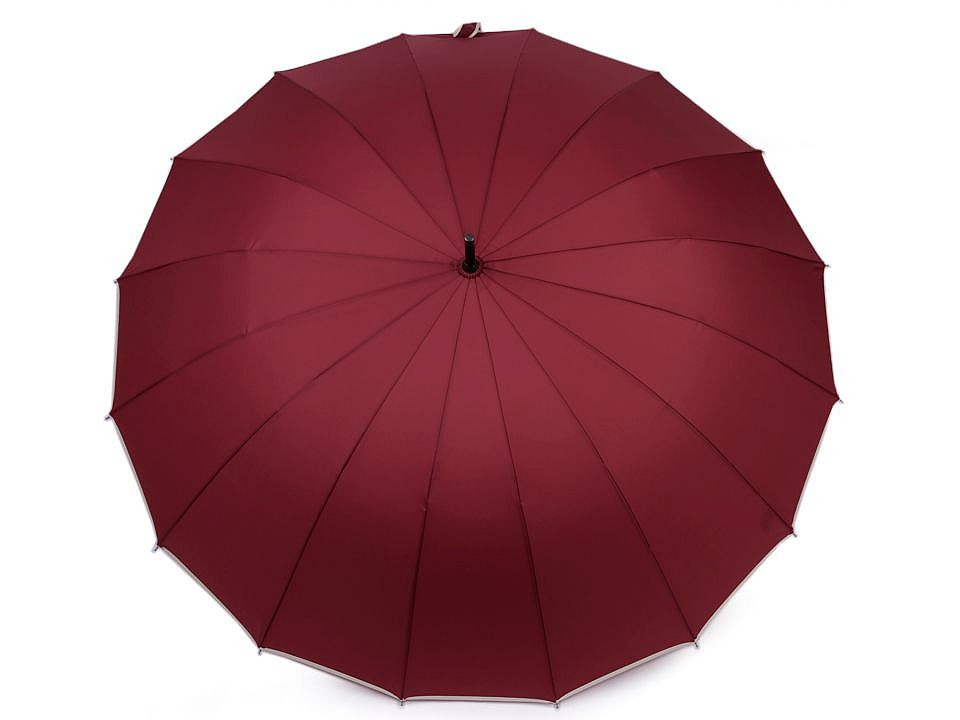 Okraje má olemované decentním barevným proužkem. Má klasickou tyč zakončenou pevnou rukojetí. Konstrukce deštníku se skládá z 16 polí. V kombinaci s pružnými lamelami a také díky velké hloubce má deštník vysokou pevnost a stabilitu.