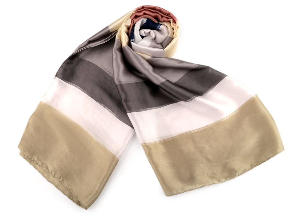 Velký saténový šátek s pruhy se stane chloubou vašeho šatníku.