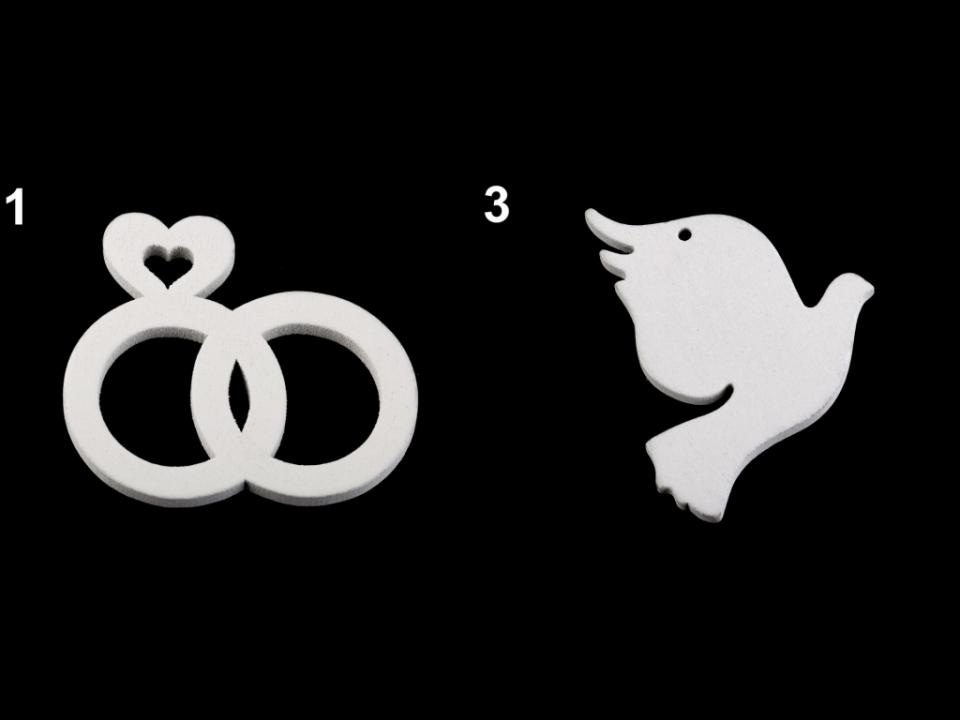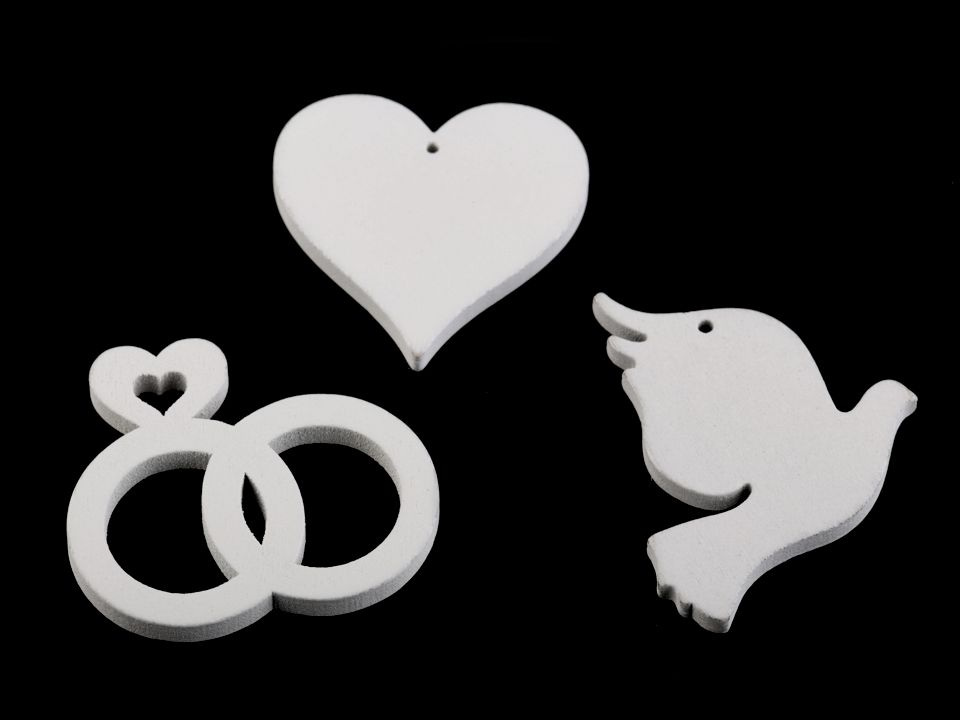 Dřevěné dekorace ozdobí každou svatbu. Můžete si vybrat motiv srdce, prstýnků nebo hrdličky. Jsou nelakované, vhodné k dalšímu dozdobení.