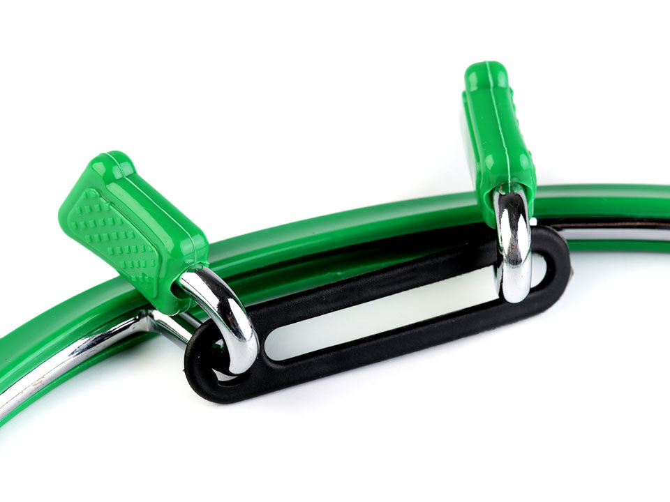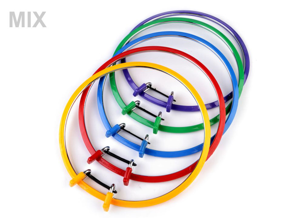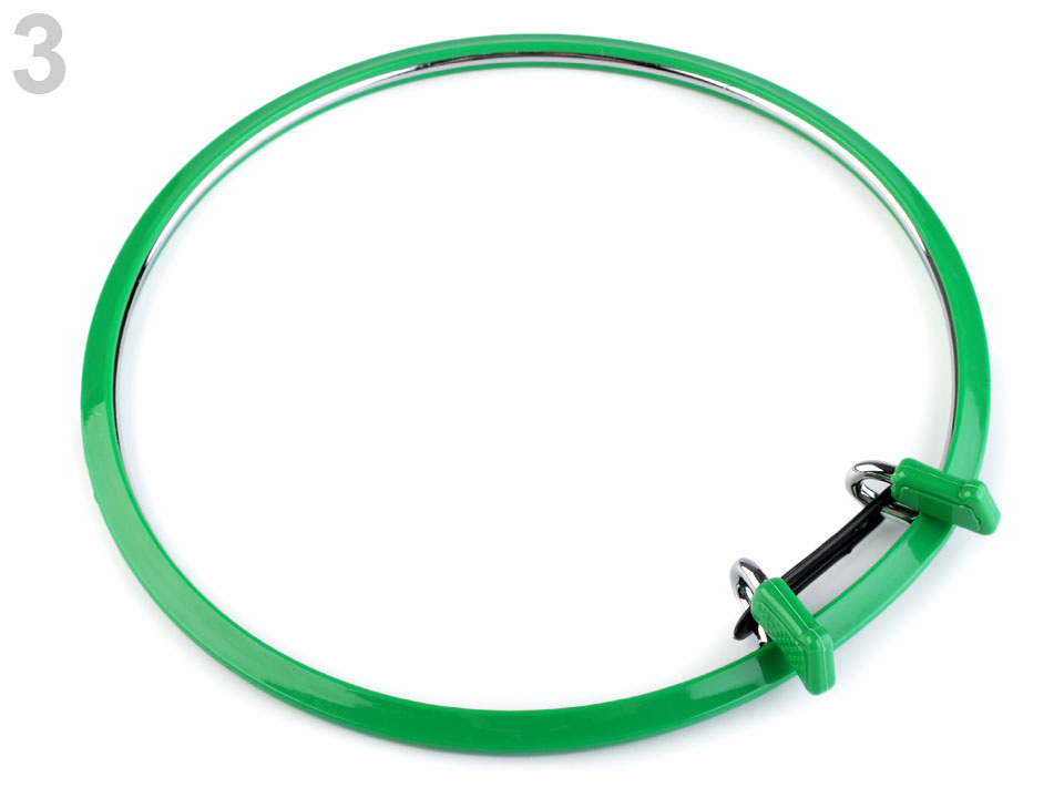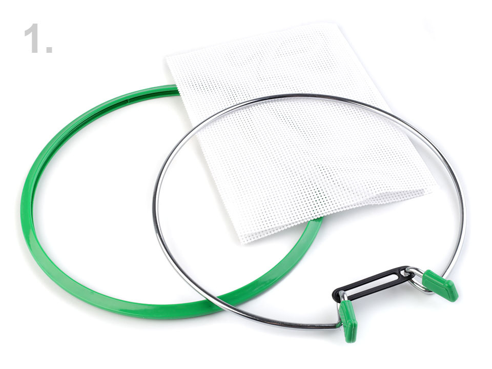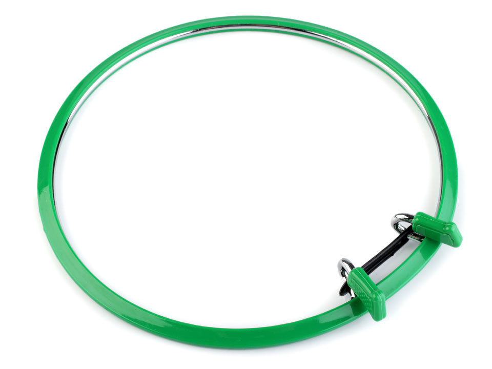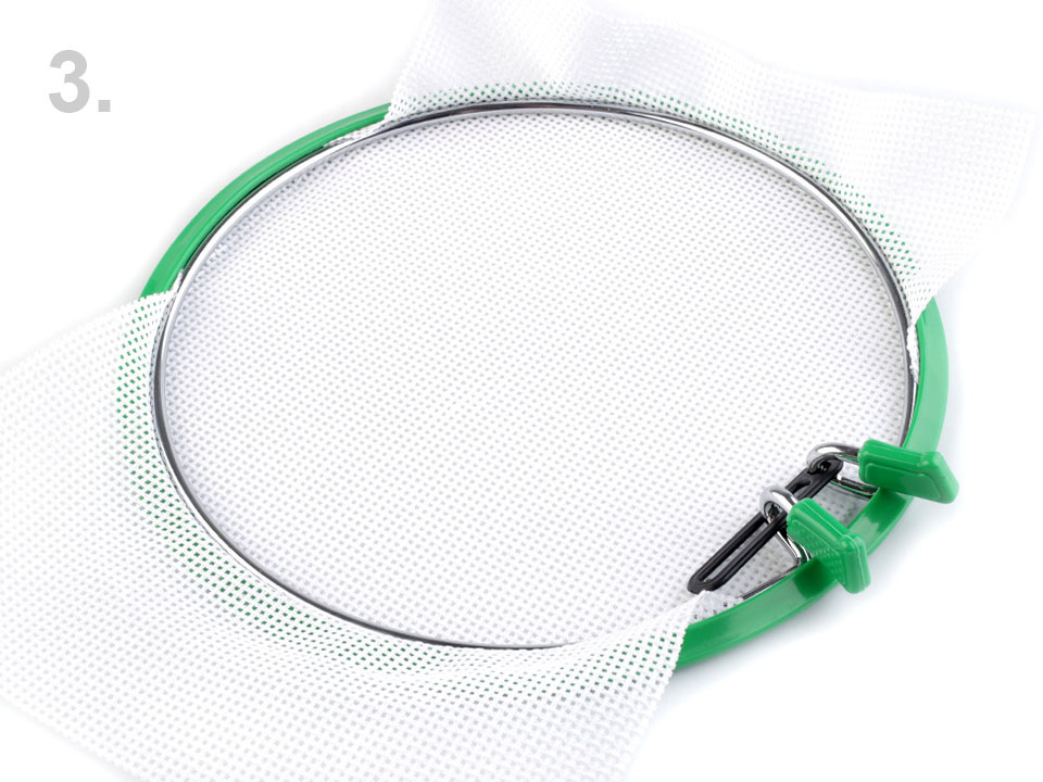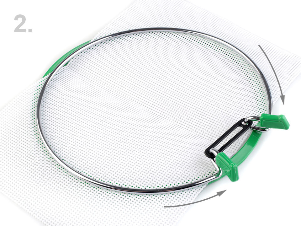 Vyšívací kruh se skládá z plastové a kovové části. Zmáčknutím nožek na kovové části kruh uvolníte.