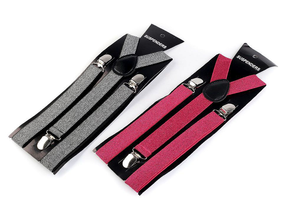 Mají šířku pruženky 2,5 cm a délku 95 cm, tvar Y. Jsou vyrobené z kvalitního polyesteru protkaného lurexovými vlákny. Ke kalhotám se připevňují pomocí kovových žabek - dvě vpředu a jedna vzadu.