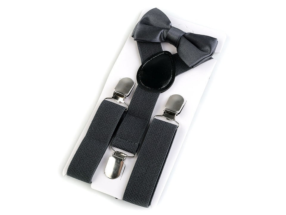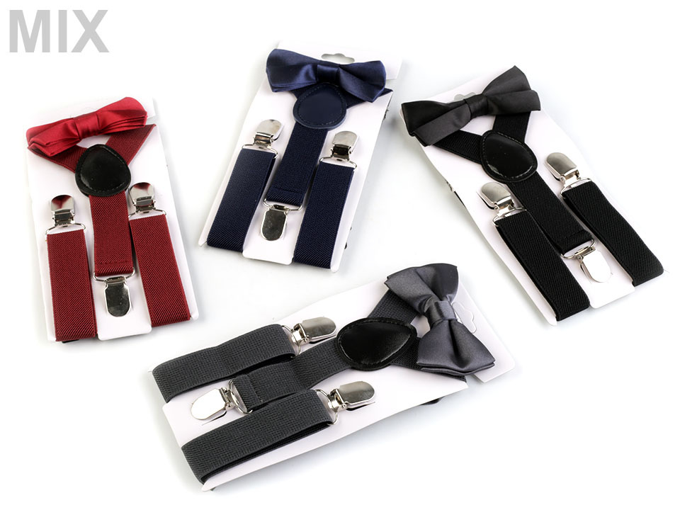 Dětský set se skládá z jednobarevných šlí a motýlka. Tato sada vykouzlí z malých andílků dokonalé gentlemany.