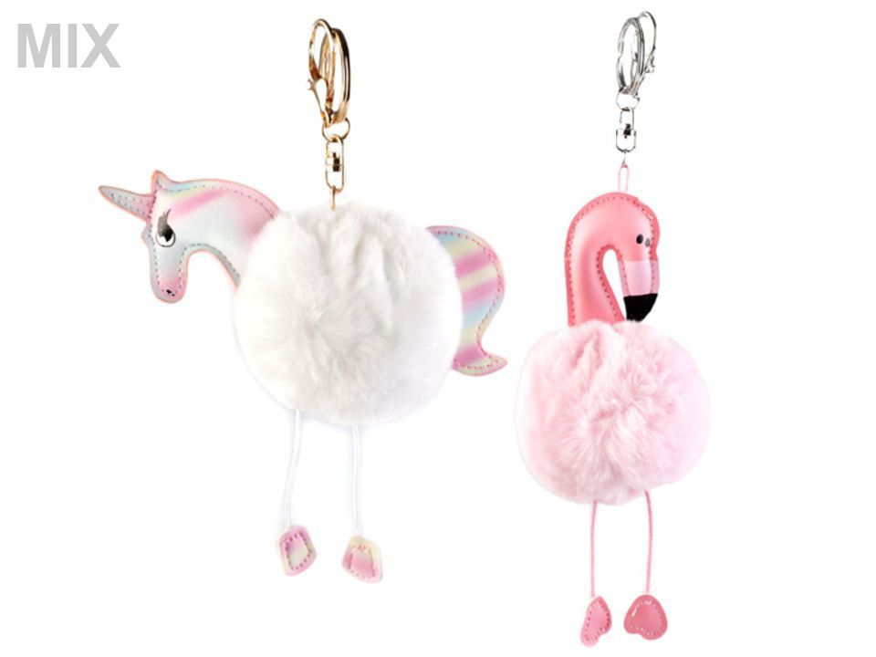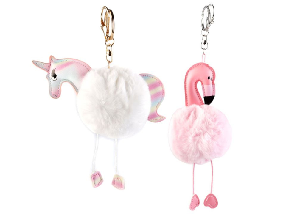 Kožešinový přívěsek jednorožec a plameňák nadchne slečny všech věkových kategorií.