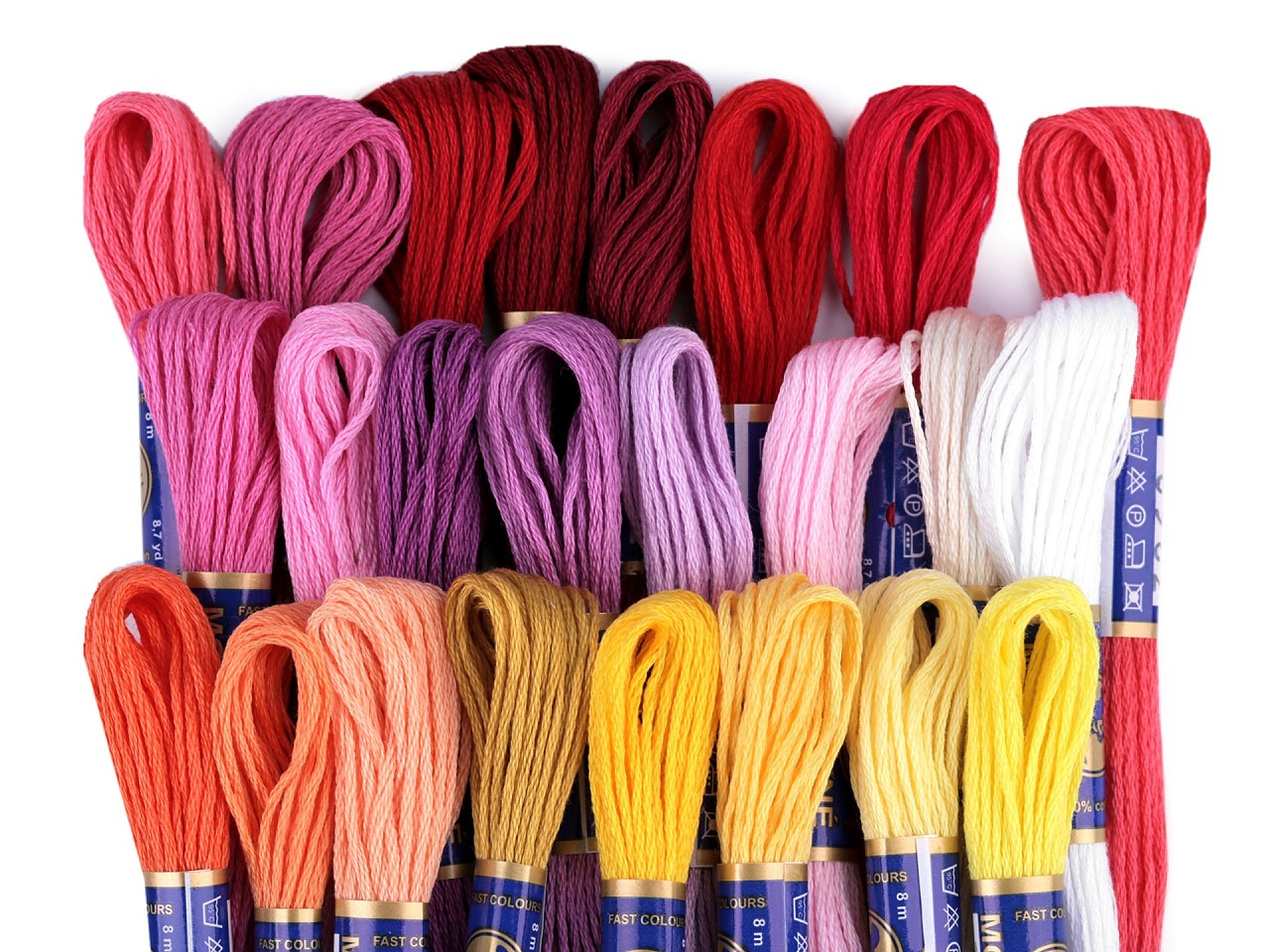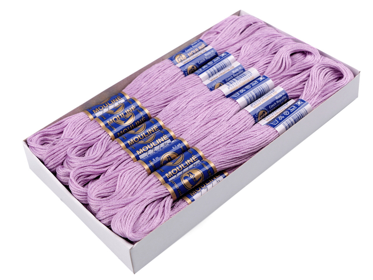Tradiční český výrobek v širokém sortimentu barev. V krabičce je 24 přadýnek. Na jednom přadýnku je 8 m.