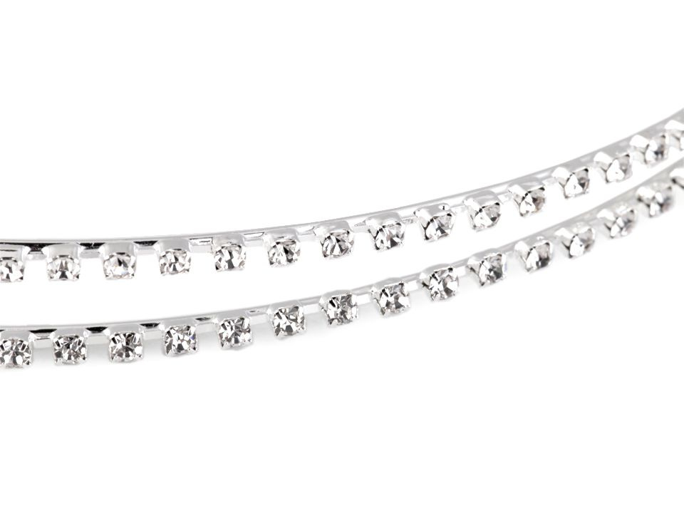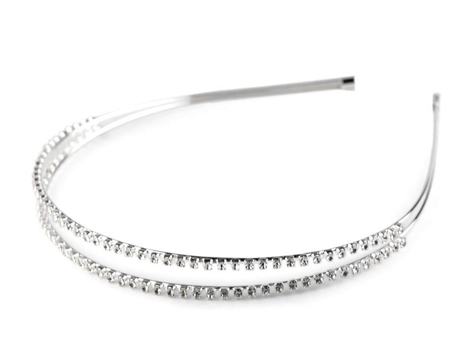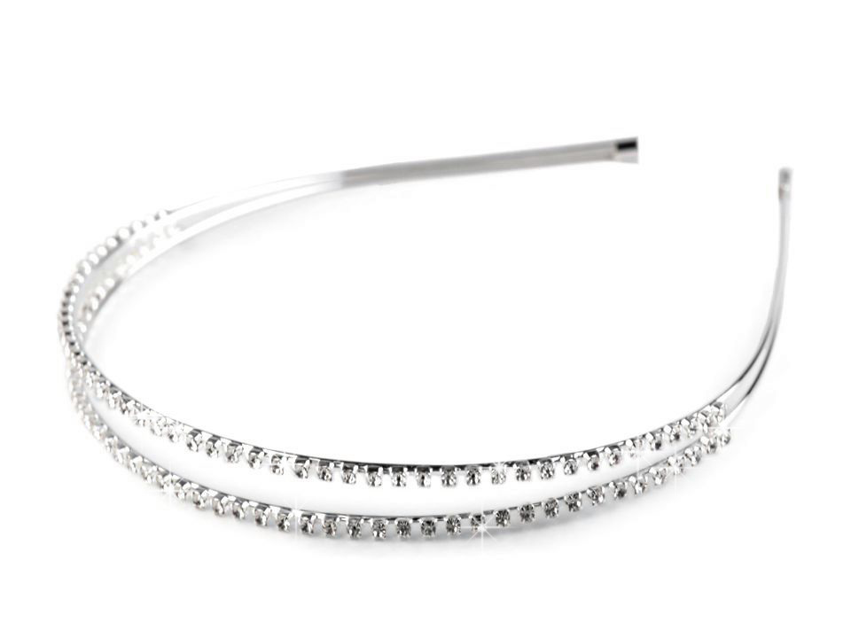 Dvouřadá čelenka se štrasovými kamínky je velice elegantní. Hodí se nejenom jako doplněk do vlasů pro nevěsty a družičky, ale také na slavnostní příležitost jako jsou plesy, večírky, party či narozeniny.