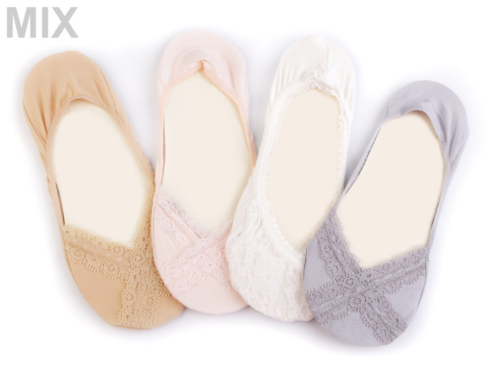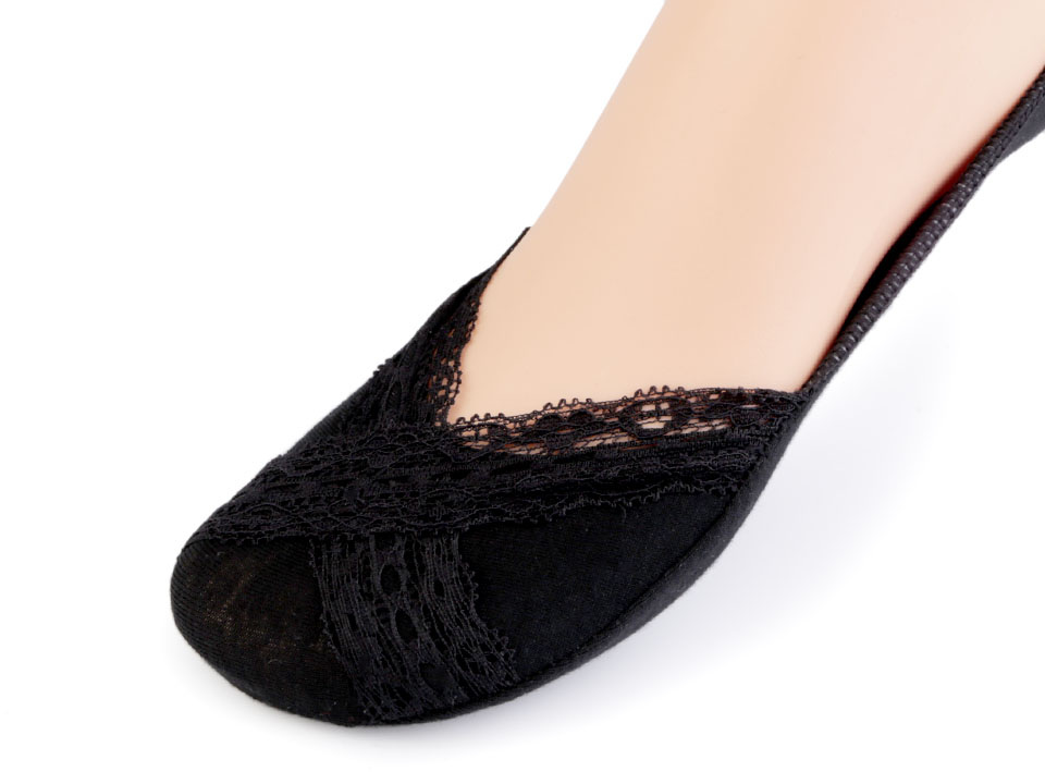 Bavlněné ponožky s krajkou využijete do balerín, espadrilek a do všech bot s otevřeným nártem. Jsou velice komfortní, pohodlné a elastické. Mají tlumící polštářek pod bříšky chodidel, který odlehčí váš došlap. Bavlna balerínkovým ťapkám dodává perfektní savost. Díky tomu, že jsou chodidla v suchu, nešíří se v botě plísně a bakterie. Celý okraj ponožky je pružný a přizpůsobivý. Díky němu ponožky skvěle sedí na noze, při chůzi nesklouzávají z paty ani z nártu.