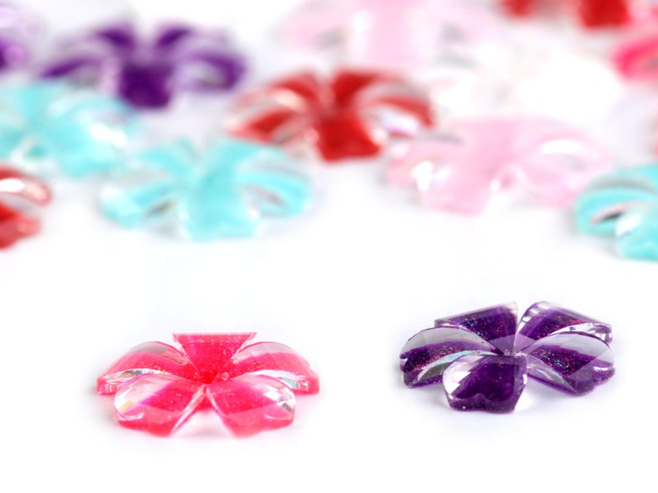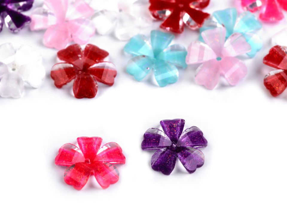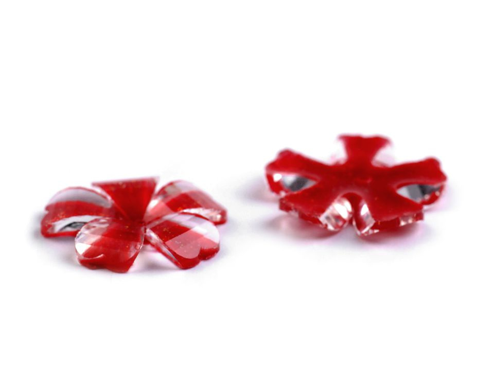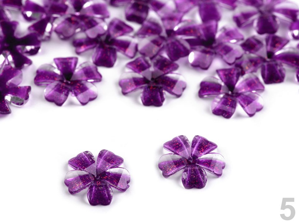 Drobné broušené květy s metalickým efektem se krásně třpytí. Uprostřed květu je průvlek, který slouží k přišití ozdoby.