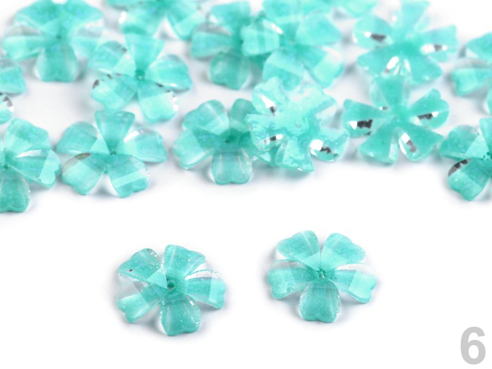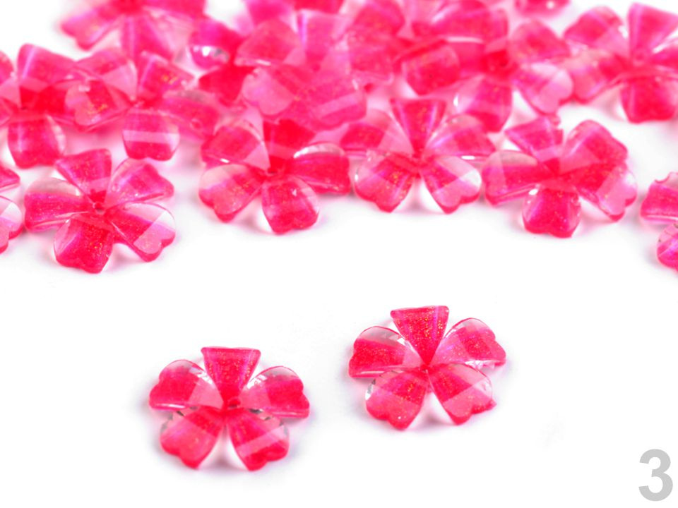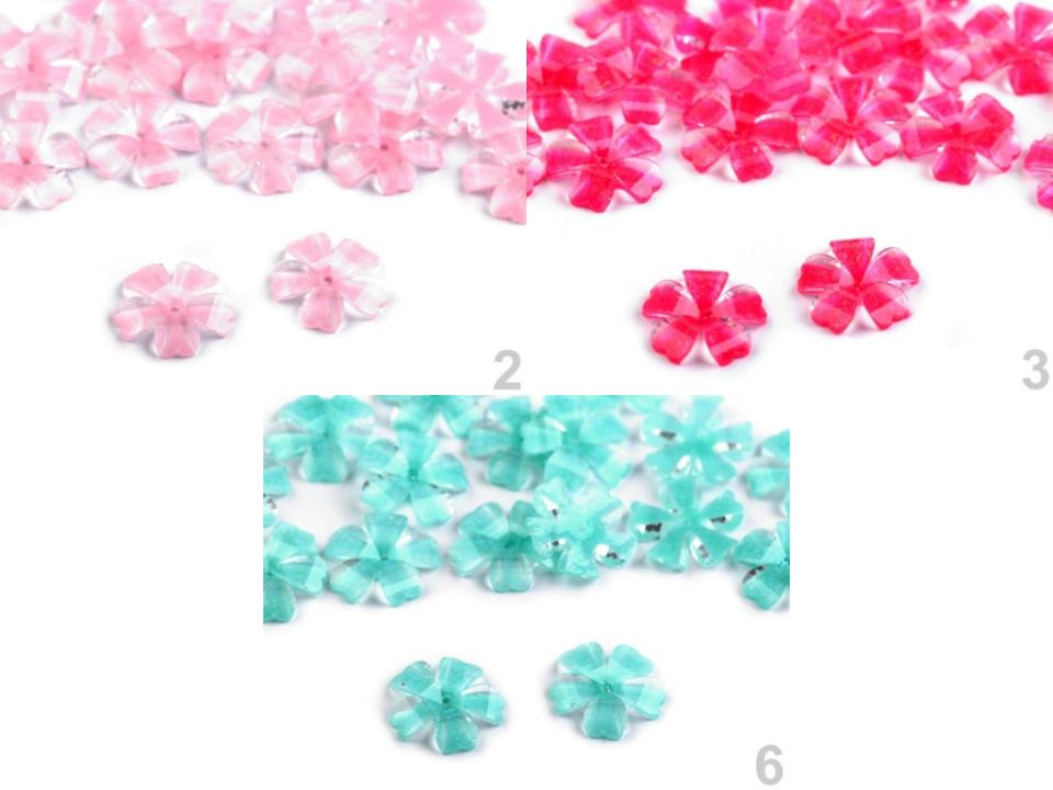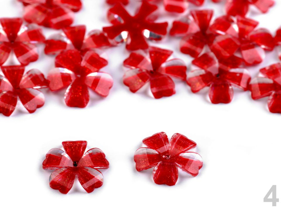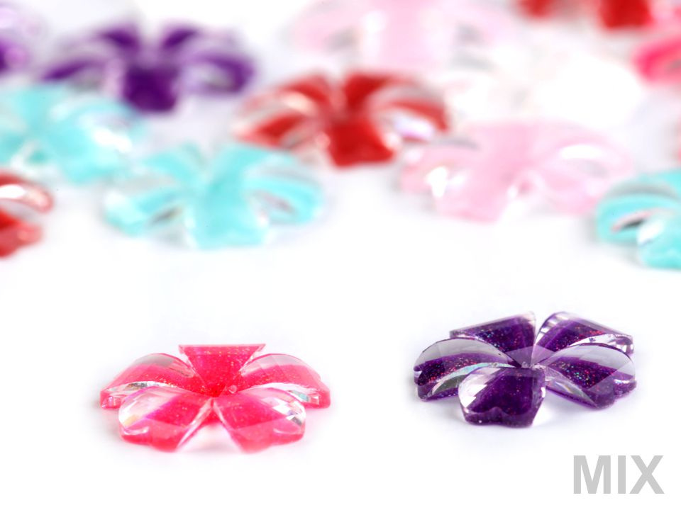 Drobné broušené květy s metalickým efektem se krásně třpytí. Uprostřed květu je průvlek, který slouží k přišití ozdoby.