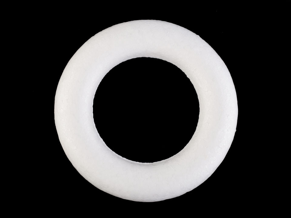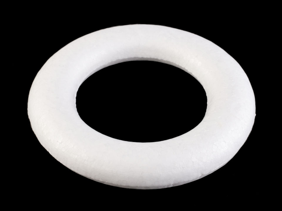 Polystyrenový věnec využijete k aranžování a zdobení. Můžete na něj přidat stuhy, květy, plody apod. Je vhodný také na techniku nešitého patchworku.
