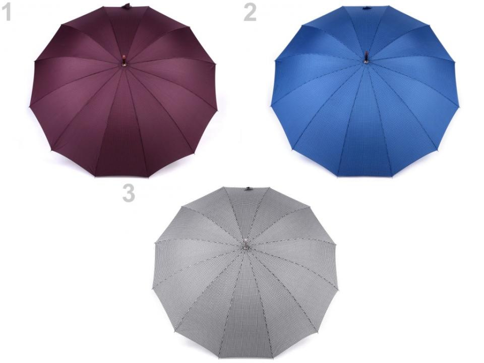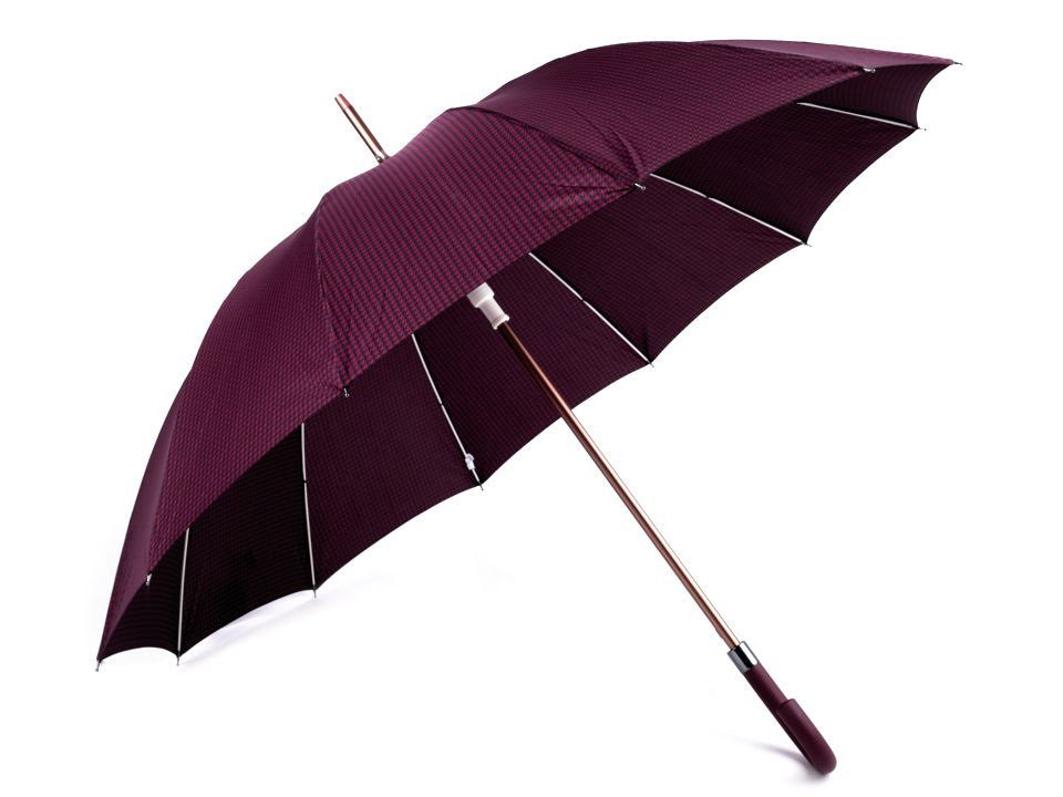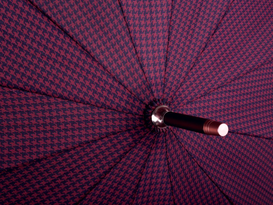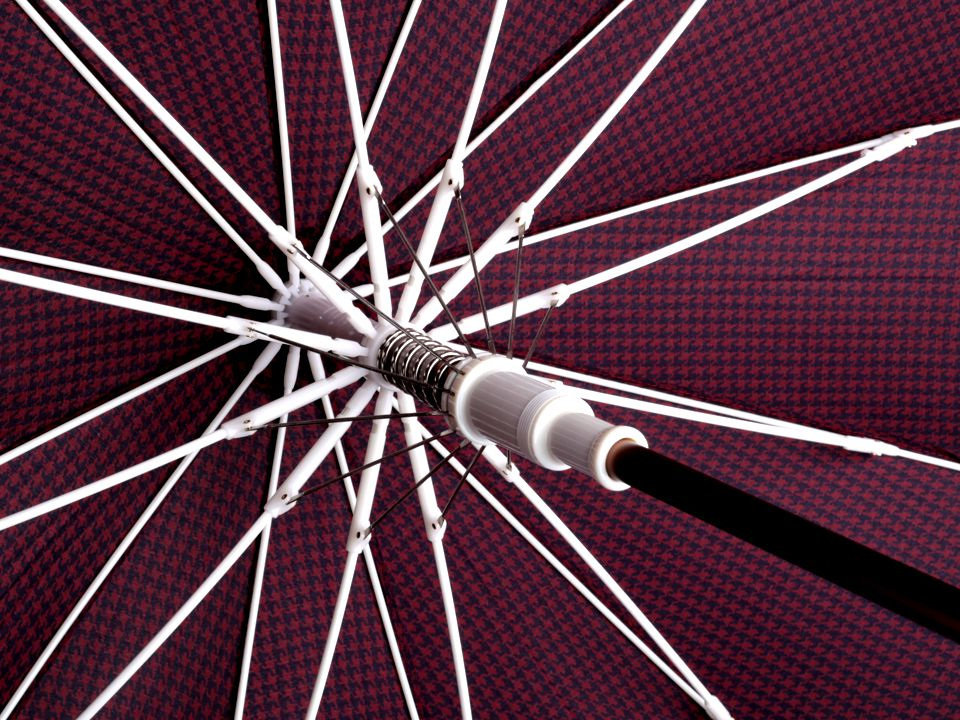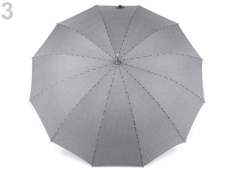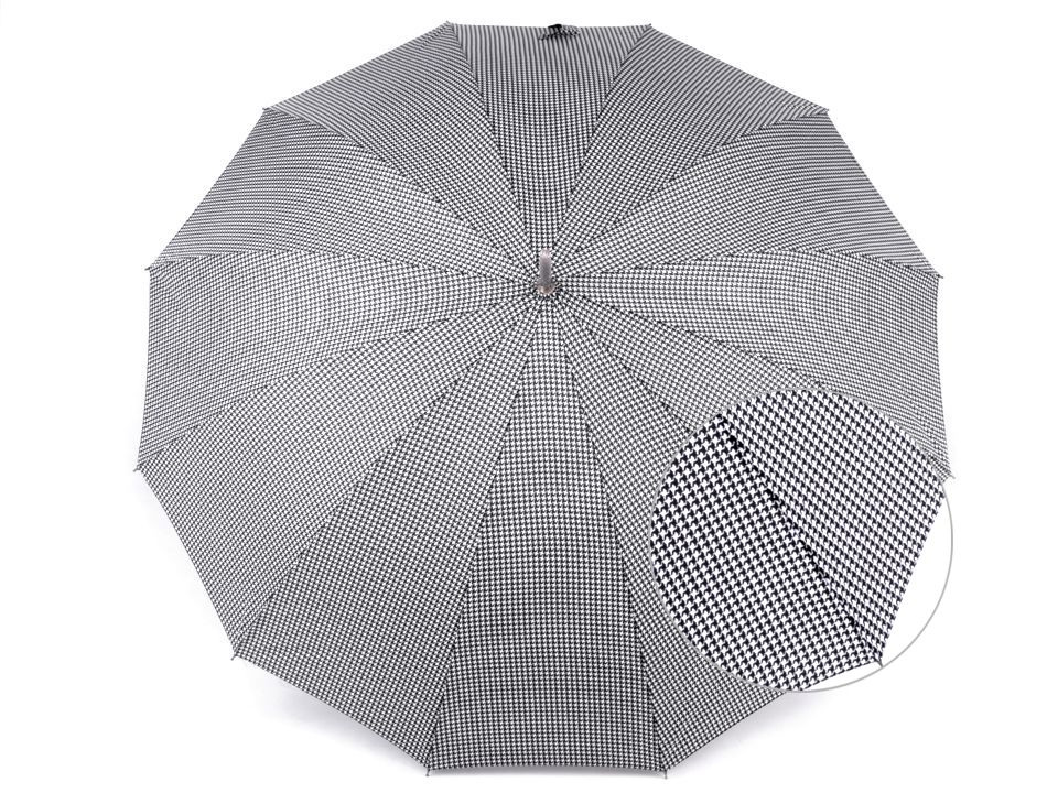 Pod velký vystřelovací deštník s drobným vzorem kohoutí stopy pohodlně schováte sebe i svého partnera. Díky jeho velkého průměru 115 cm je vhodný jako deštník pro dva (rodinný deštník).