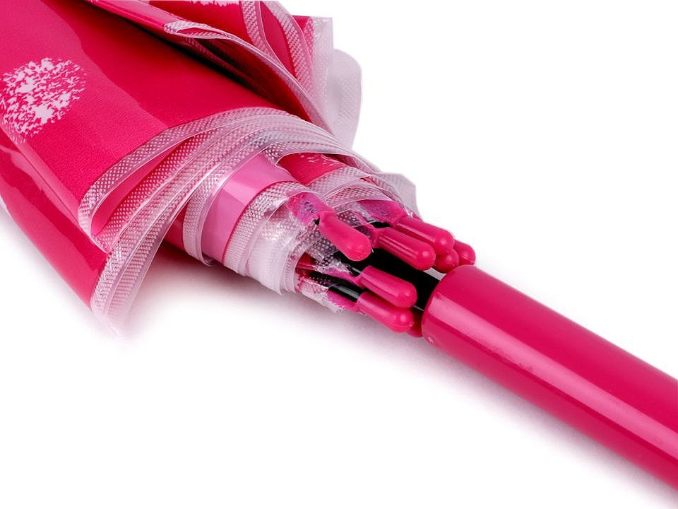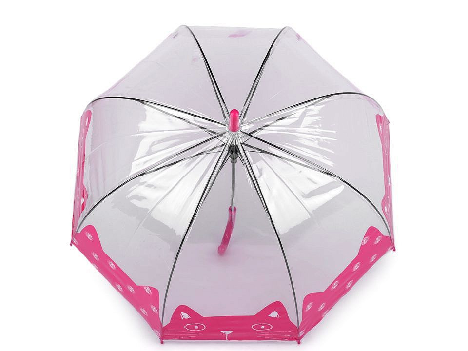 Hluboký průhledný deštník je děvčaty mimořádně oblíbený.