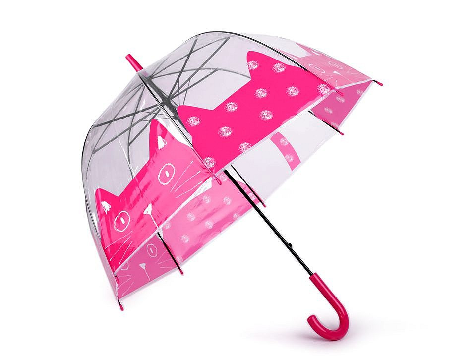 Potah je pevný, má veselý potisk koček. Deštník je vystřelovací, s klasickou tyčí zakončenou pevnou rukojetí. Konstrukce deštníku je z kovového drátu a tvoří osm polí.