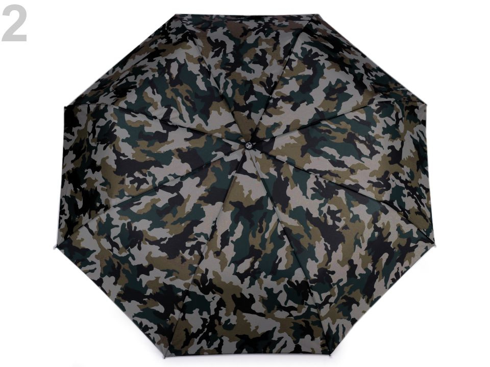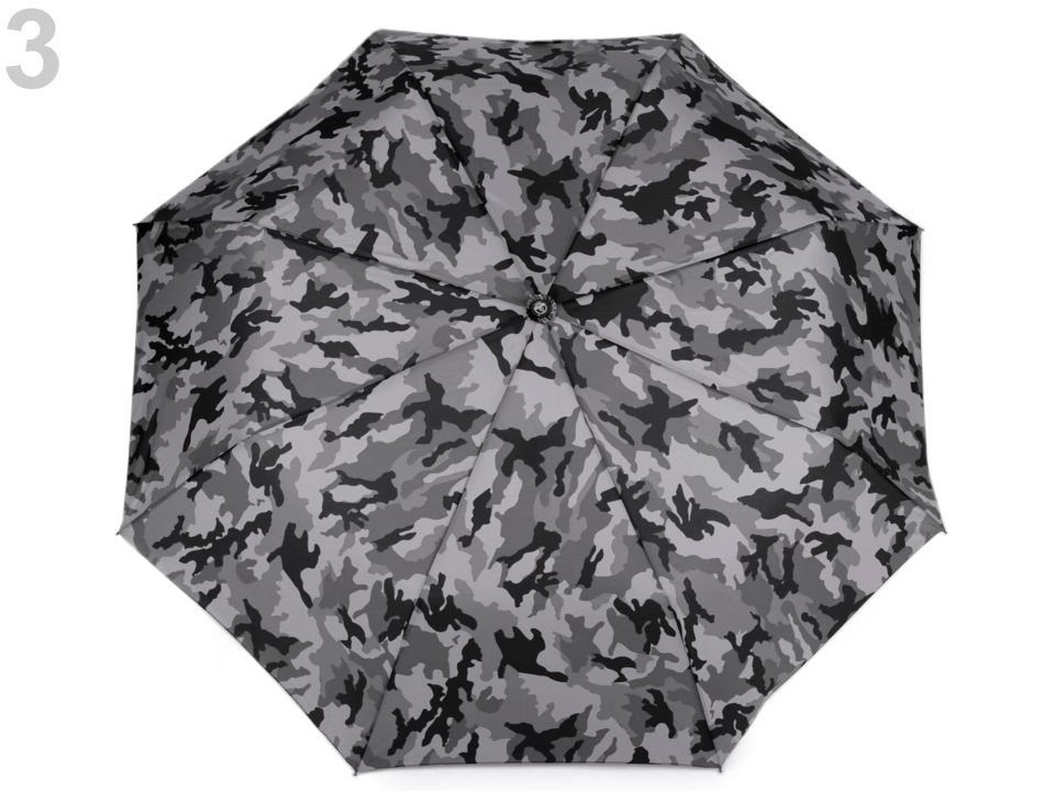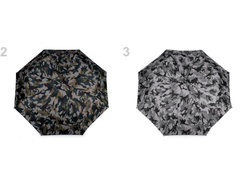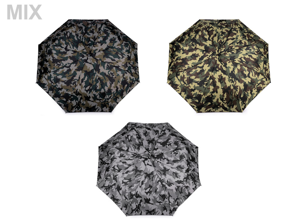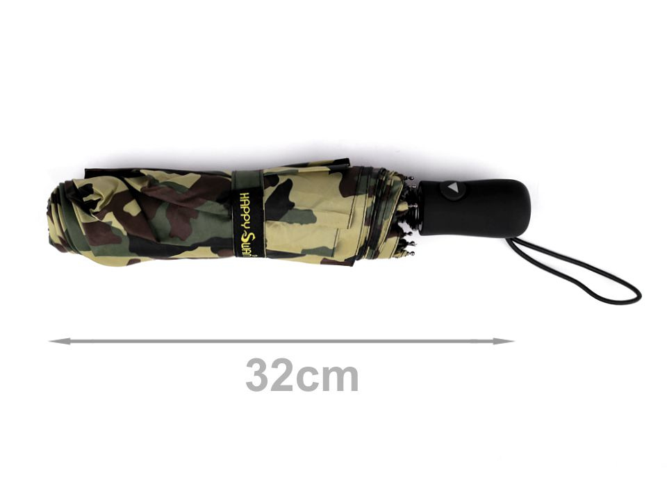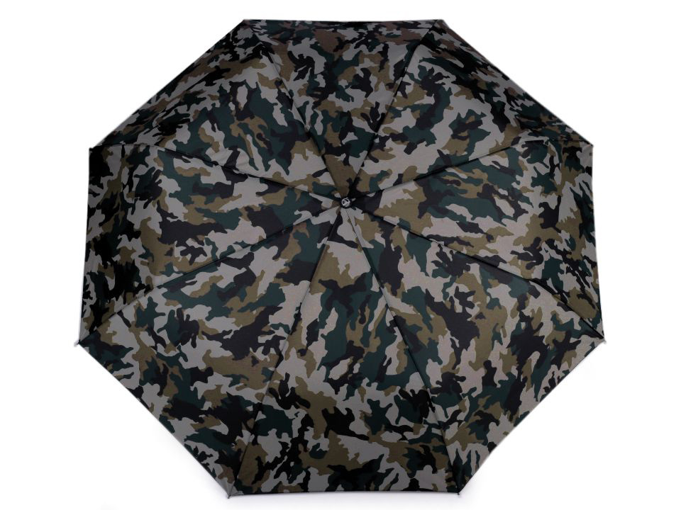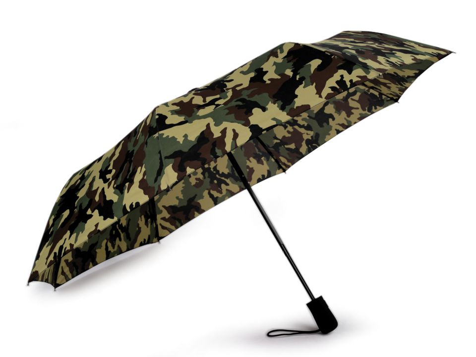 Skládací vystřelovací deštník s maskáčovým potiskem spolehlivě ochrání před nepřízní počasí. Vyhovuje vysokým požadavkům, splňuje všechna kritéria maximální funkčnosti a odolnosti, ale také praktičnosti.