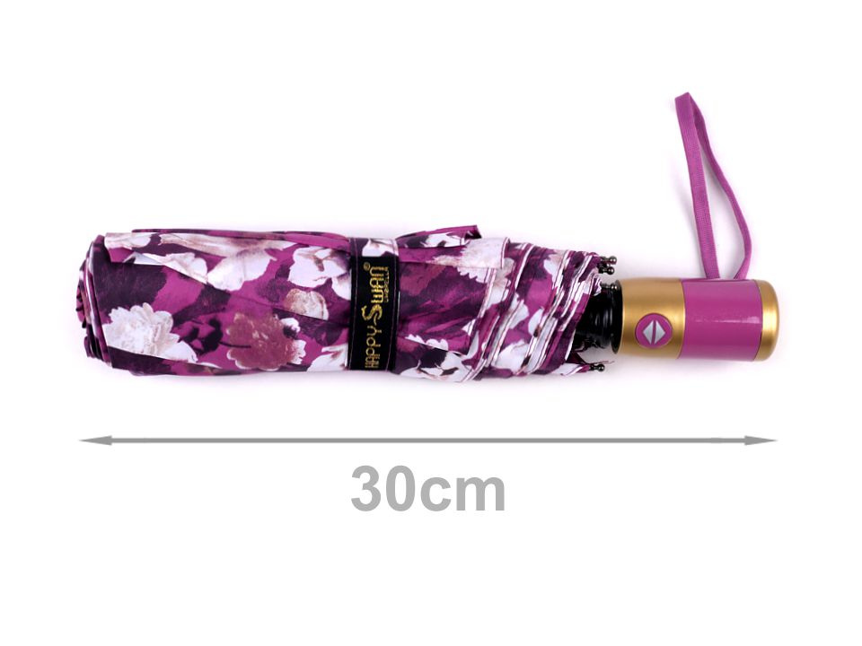 Plně automatický skládací deštník je vyrobený z kvalitního materiálu. Je velice pevný, odolá náporům větru. UV filtr vás ochrání před slunečním zářením. Konstrukce je tvořena osmi poli. Součástí deštníku je ochranný obal.