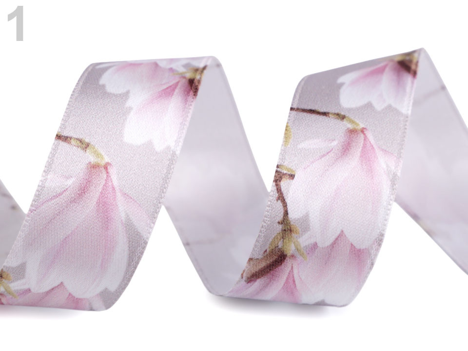 Magnolie jako živé najdete na dekorační stuze. Potisk je jednostranný.