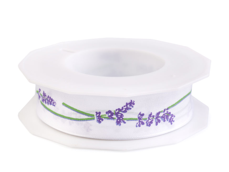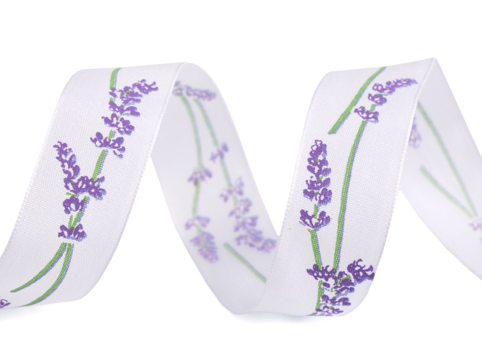 Stuha s levandulemi díky drátkům po stranách dobře drží tvar. Potisk je jednostranný.