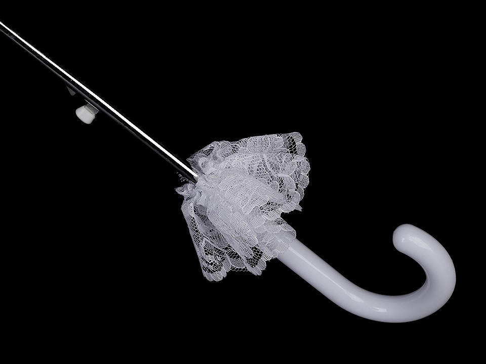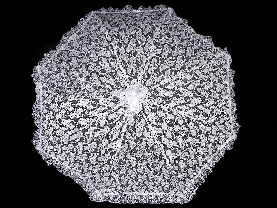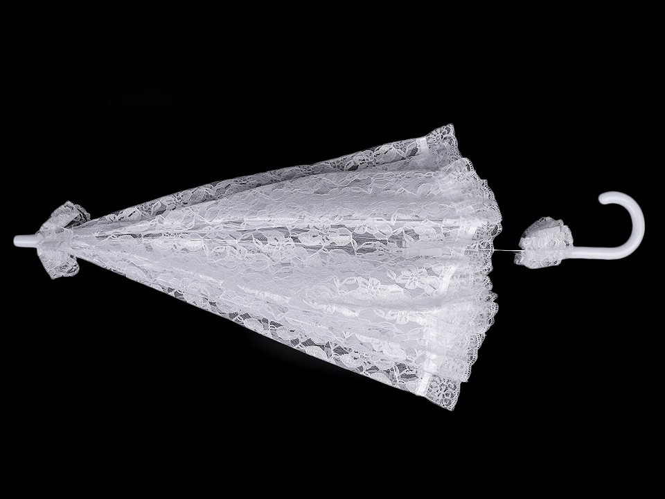 Krajkový deštník můžete v případě hezkého počasí využít jako doplněk při focení nebo slunečník. Hodí se pro nevěsty v jejich svatební den i pro romantické focení v exteriéru nebo ateliéru.