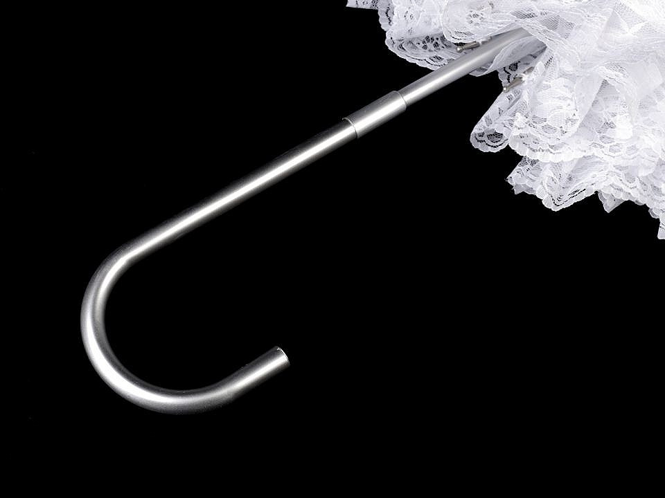 Deštník je celokrajkový, okraje má zakončené nařasenou krajkou. Má klasickou tyč zakončenou pevnou rukojetí. Madlo deštníku je celokovové - z hliníku, díky tomu má deštník velice malou hmotnost. Kovová konstrukce deštníku se skládá z 8 polí, zajišťuje vysokou pevnost a stabilitu.