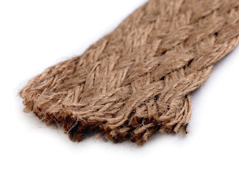 Splétaný popruh je vyrobený z přírodního materiálu. Zaujme vás jeho pevnost a odolnost. Je spletený z jutových provázků.
