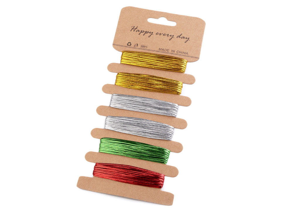 Plochá šňůrka je vyrobena z kovového vlákna, které krásně třpytí. Díky němu působí luxusně a nevšedně. Šňůrka je pevná, není pružná.