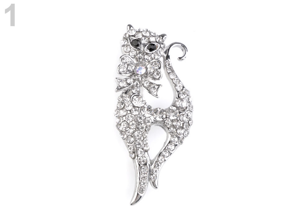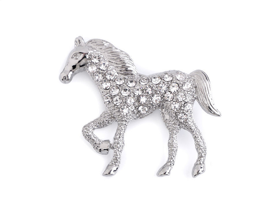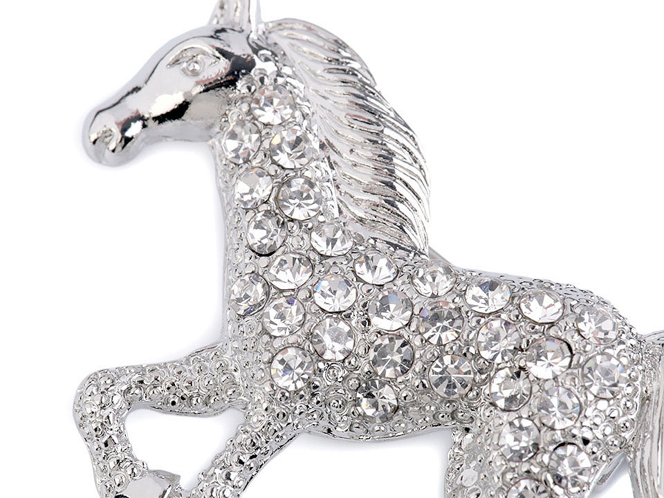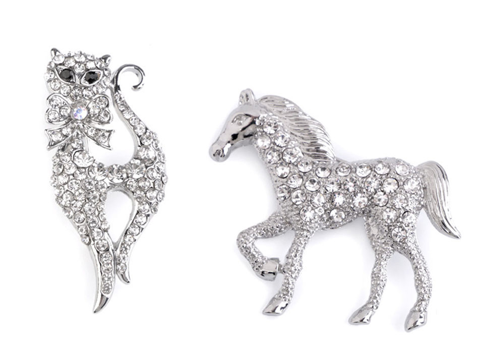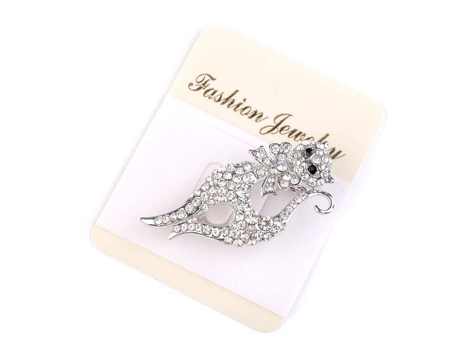 Kvalitní kovový základ je osázený drobnými broušenými kamínky, které se krásně třpytí. Zapíná se pomocí spínacího špendlíku, který má pojistku proti nechtěnému otevření.