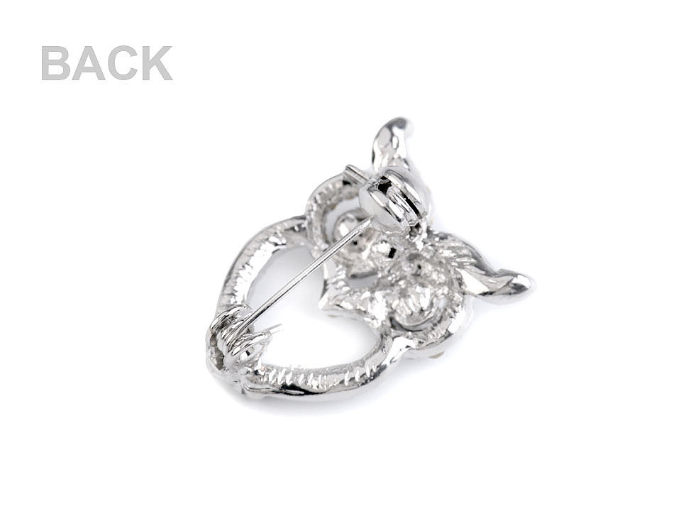 Elegantní třpytivá brož skvěle oživí jakýkoliv oděv. Kvalitní kovový základ je osázený broušenými kamínky, které vytvářejí oslnivé odlesky. Zapíná se pomocí spínacího špendlíku, který má pojistku proti nechtěnému otevření. Potěší mladší slečny i zralé ženy.