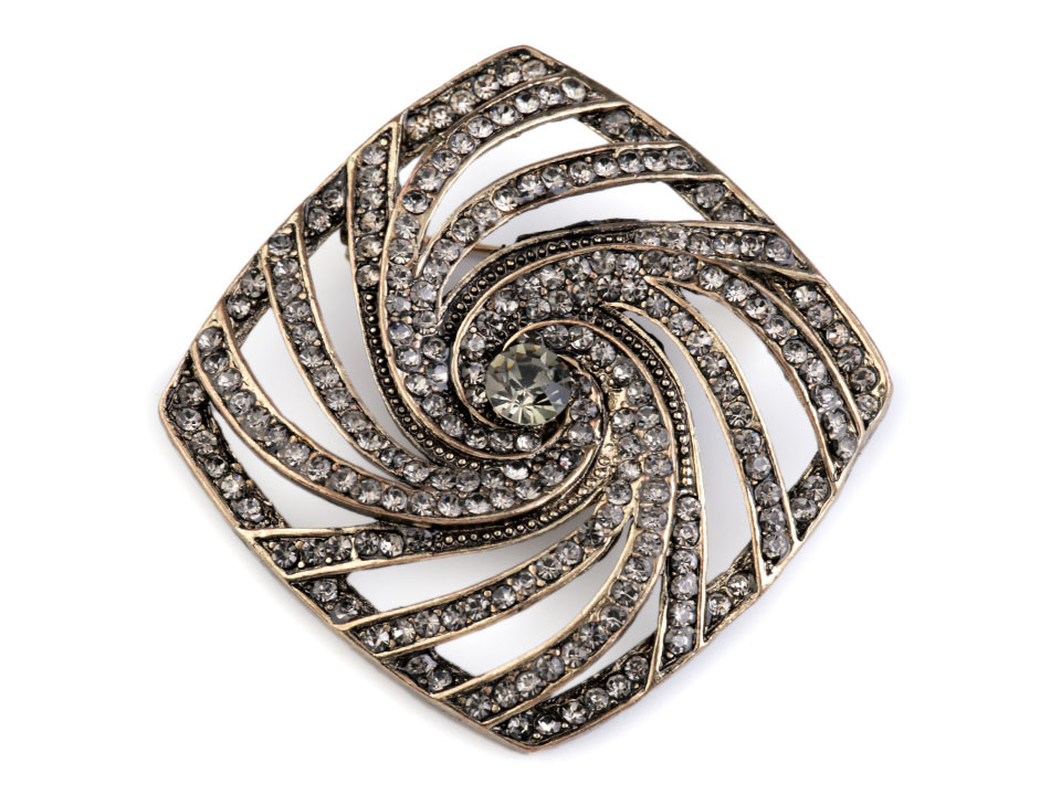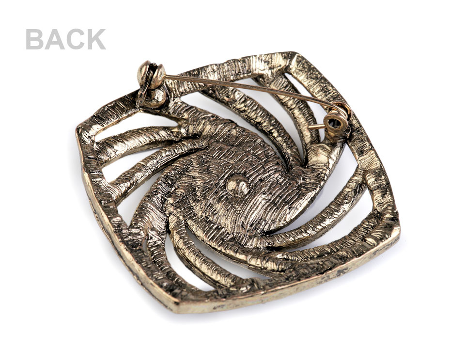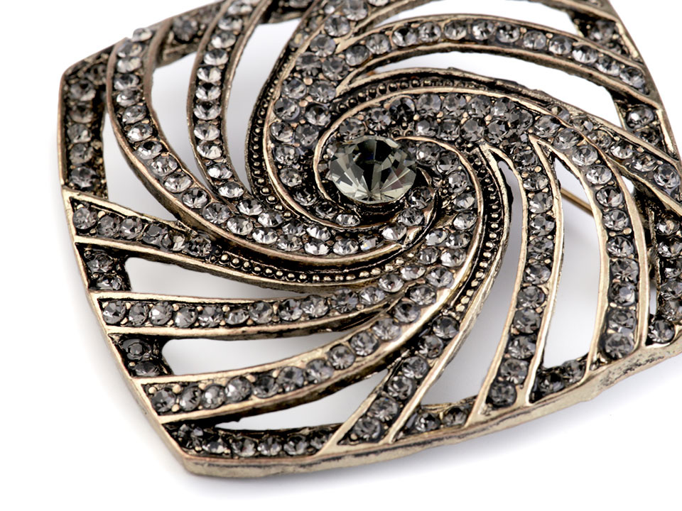 Brož s broušenými kamínky má neotřelý design, který nadchne nejednu ženu. Brož lze připevnit k oděvu pomocí spínacího špendlíku, který má pojistku proti nechtěnému otevření.