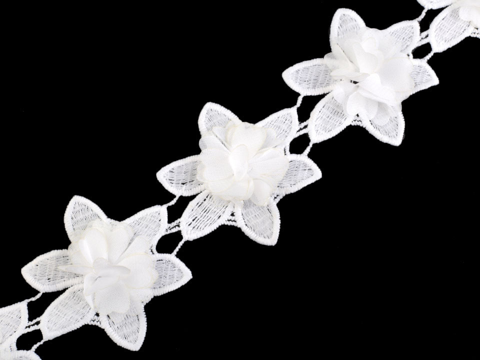 Krajkový květ působí elegantně a díky skládaným květům bohatě.