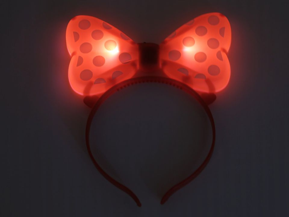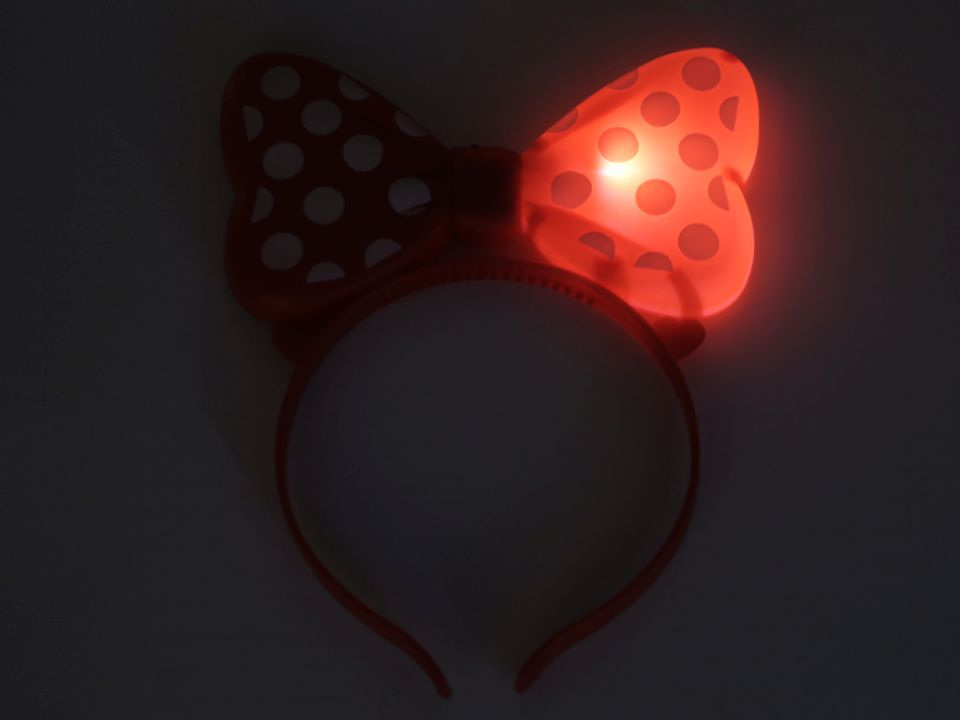 Čelenka s mašlí nadchne každou malou parádnici, hlavně díky tomu, že svítí a bliká. Bude tak na maškarním plese či párty nepřehlédnutelná.